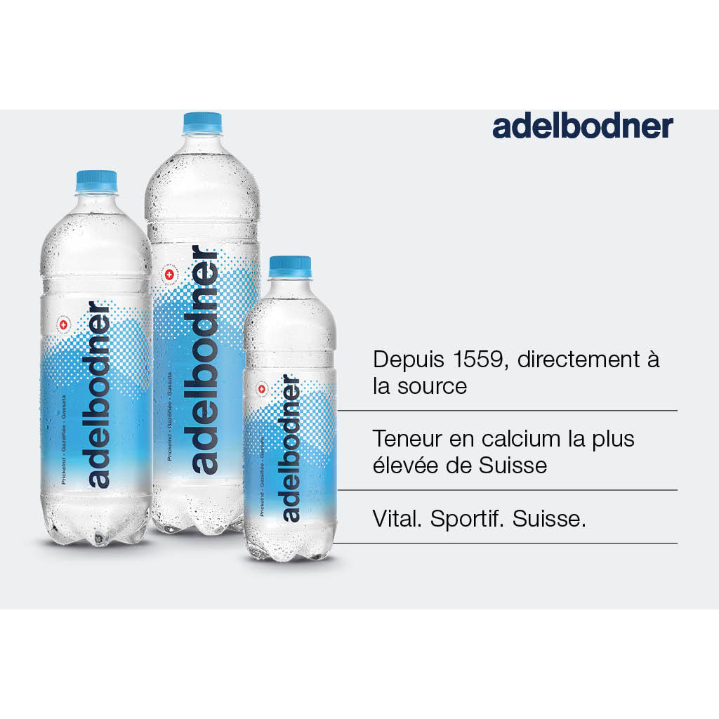 Adelbodner - l'eau minérale classique d'Adelboden. Adelbodner Mineral est la plus appréciée des eaux minérales Adelbodner et est agréablement gazéifiée.