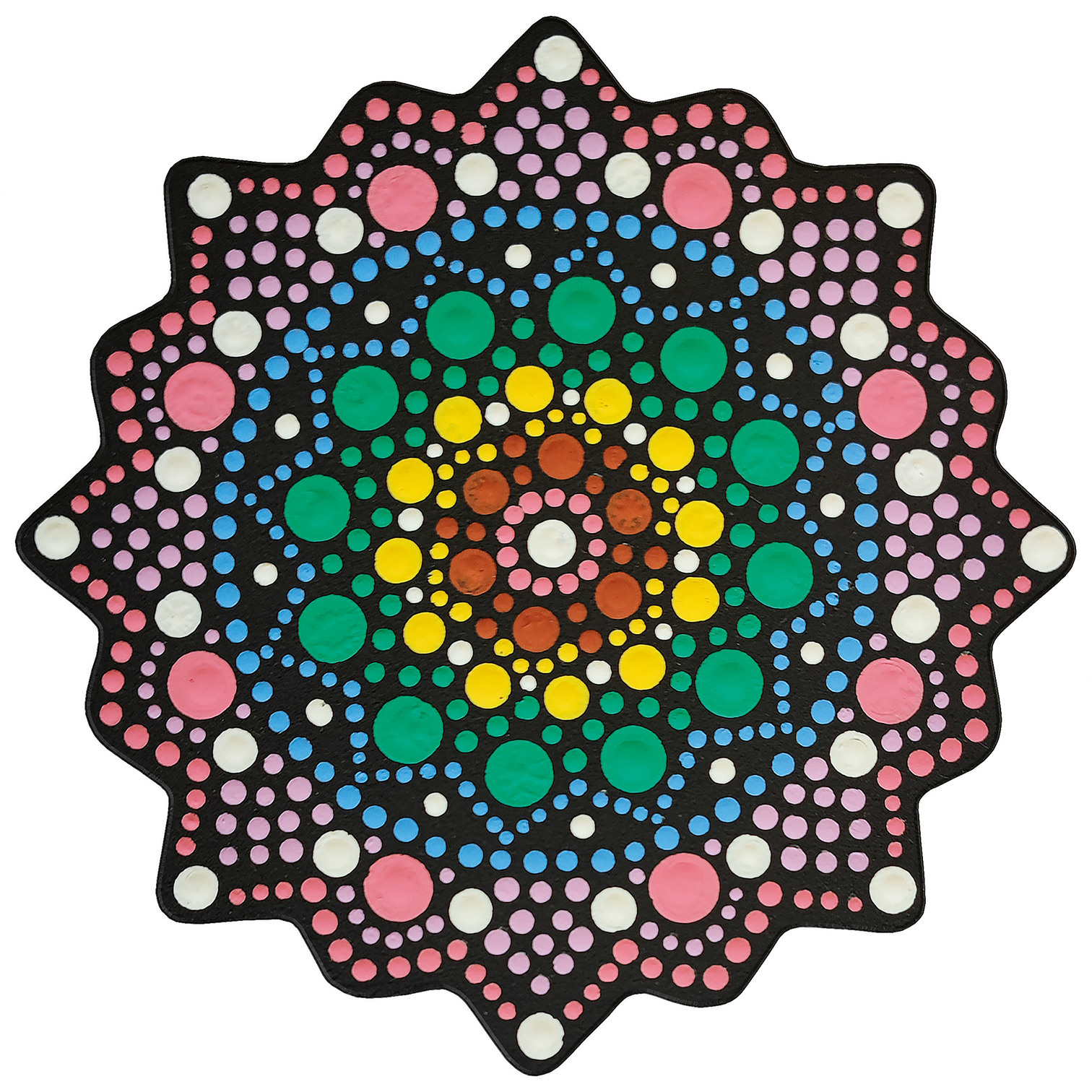 Conçu pour faciliter l'activité créative, ce kit contient un panneau MDF de 10 cm et un gabarit pratique qui permet de marquer et d'identifier les positions des points à l'aide d'un crayon. Une fois les points tracés, il ne reste plus qu'à les appliquer à l'aide d'outils de dotting de différents diamètres, pour un résultat précis et harmonieux.