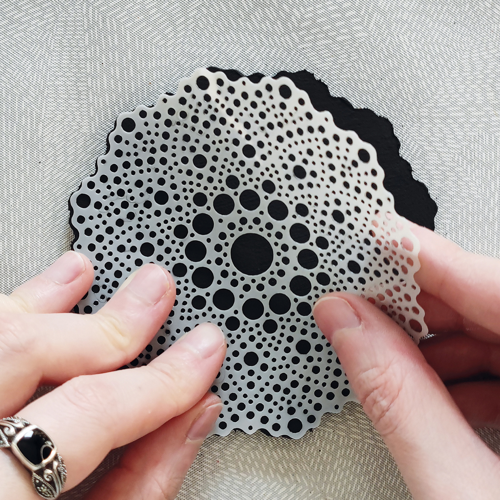 Conçu pour faciliter l'activité créative, ce kit contient un panneau MDF de 10 cm et un gabarit pratique qui permet de marquer et d'identifier les positions des points à l'aide d'un crayon. Une fois les points tracés, il ne reste plus qu'à les appliquer à l'aide d'outils de dotting de différents diamètres, pour un résultat précis et harmonieux.