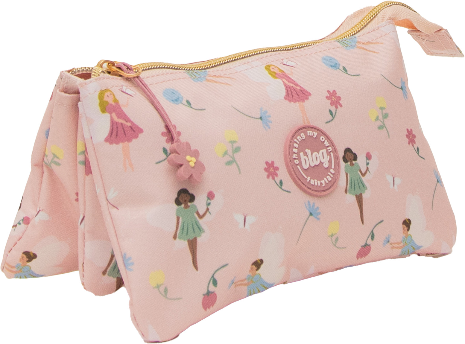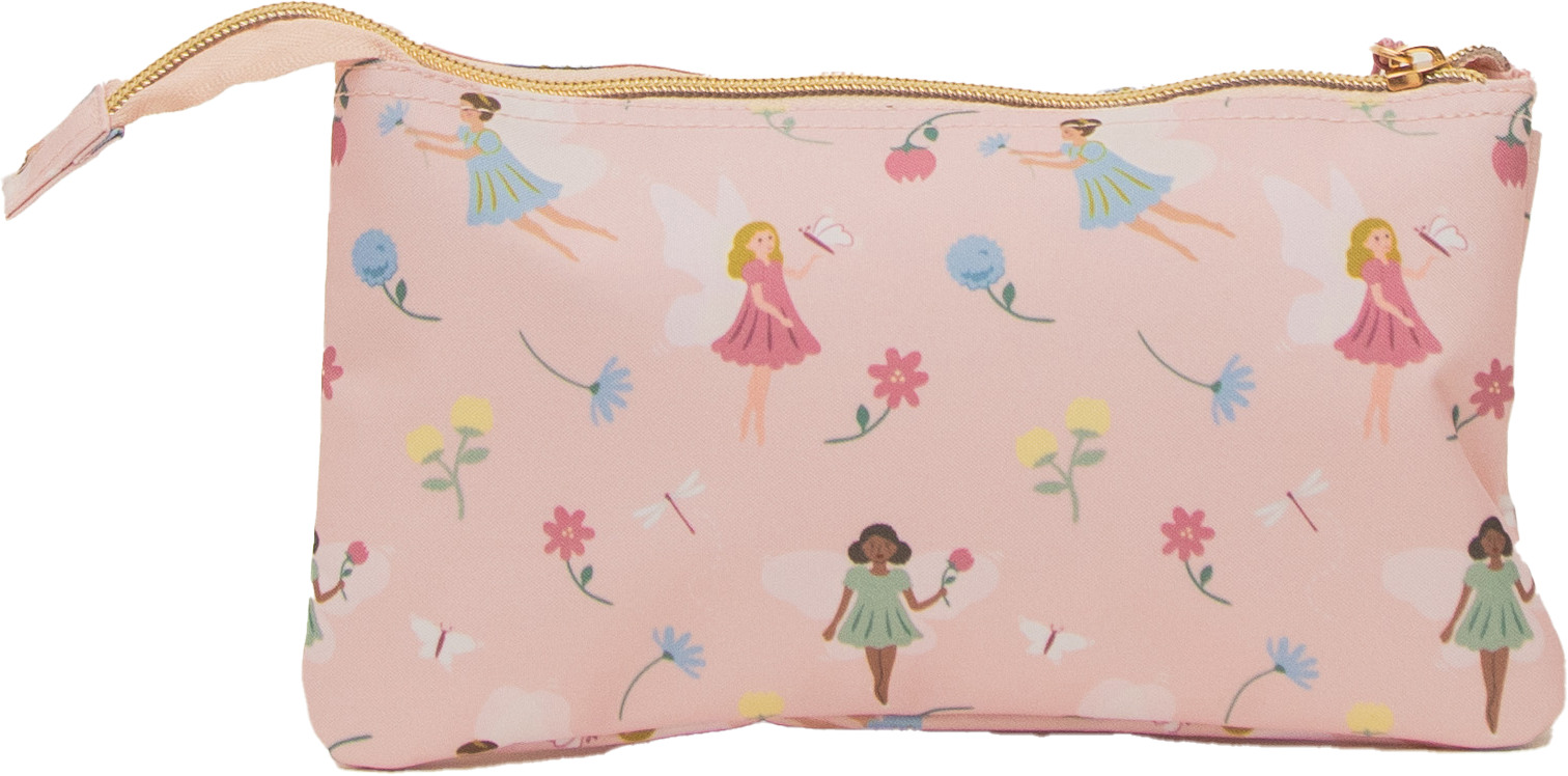 Praktisches Etui aus Polyester mit verspieltem, floralem Design in zarten Rosatönen. Mit den Massen 22 × 11 × 2 cm und drei separaten Fächern bietet es übersichtlichen Stauraum für Stifte und Schreibutensilien. Ideal für Schule, Büro und unterwegs.