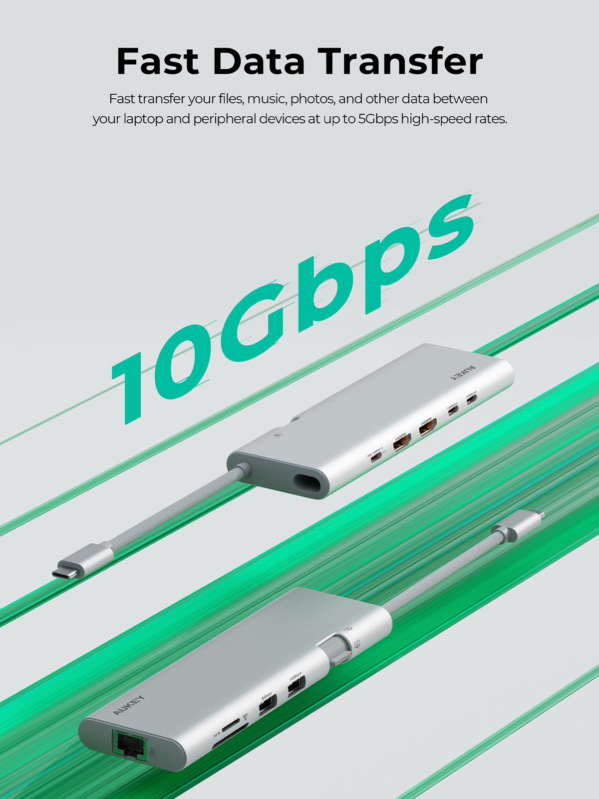 - Transfert de données à 10 Gbit/s : Équipé de 2 ports USB-C et de 2 ports USB-A, il est si puissant qu'il offre des taux de transfert de données rapides allant jusqu'à 10 Gbit/s pour plusieurs appareils en même temps, garantissant ainsi que vos photos, vidéos et fichiers restent intacts.