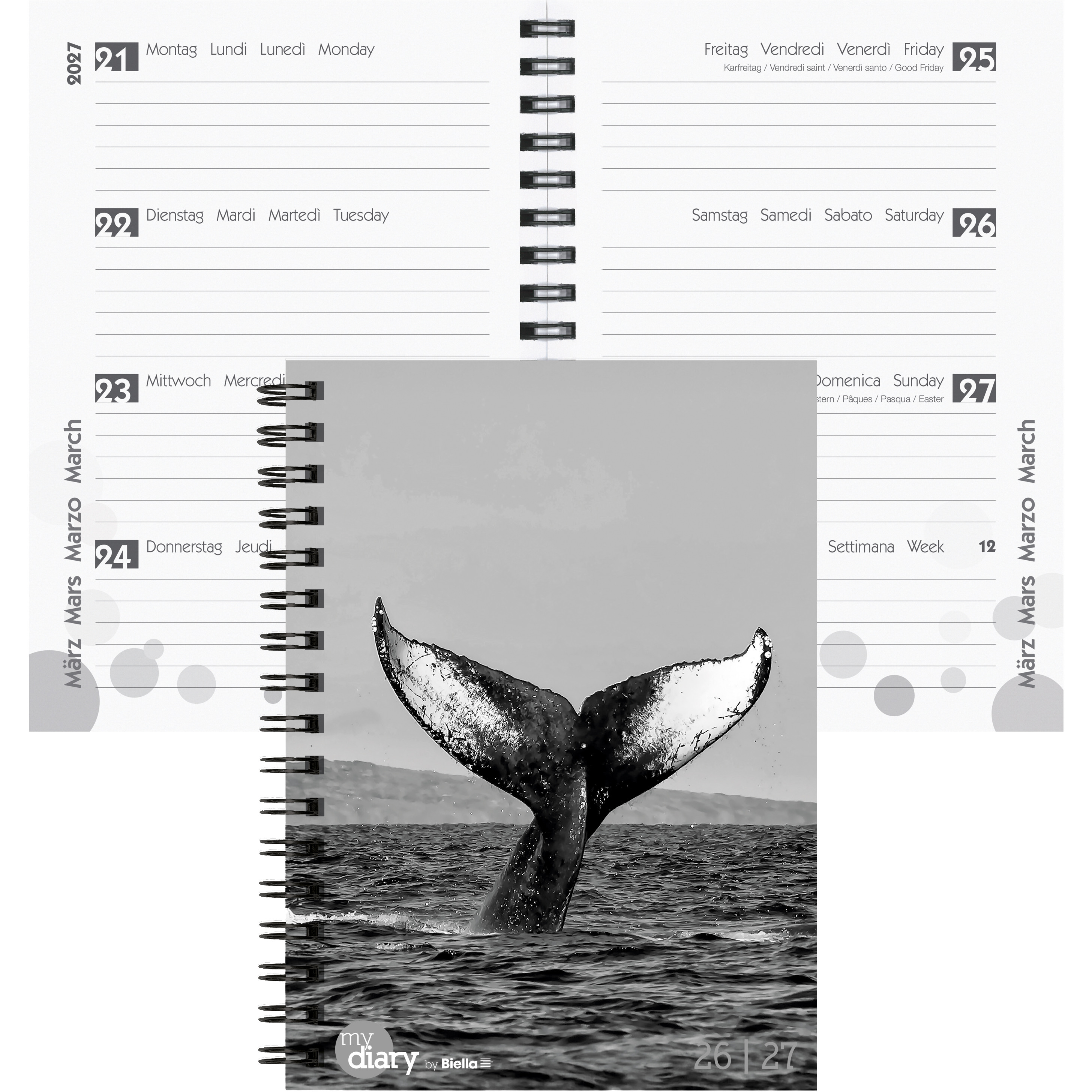 L'agenda scolaire Biella brille par son aspect tendance, son calendrier moderne et ses nombreuses fonctions supplémentaires. Il convient parfaitement comme agenda classique, cahier de devoirs, journal intime ou combinaison de tout cela. La version 1 semaine sur deux pages avec reliure à spirale offre suffisamment de place pour les rendez-vous scolaires et privés et vous donne un aperçu de la semaine. Format 12 x 16,5 cm. 178 pages. Couverture en papier Cylar (PP translucide) imprimé. Calendrier août - juillet, d-f-i-gb, impression anthracite. Pages annuelles et mensuelles. Coins perforés, grand espace pour les notes. Partie informative, vacances scolaires Suisse, France, Autriche, Allemagne.