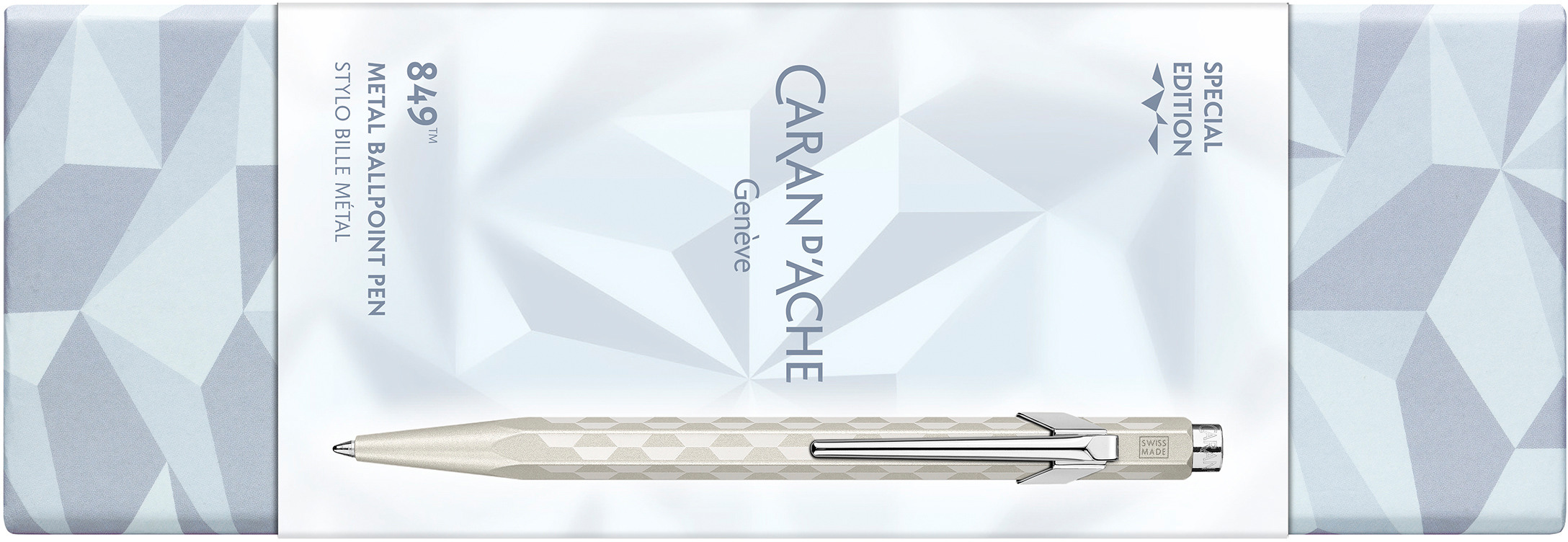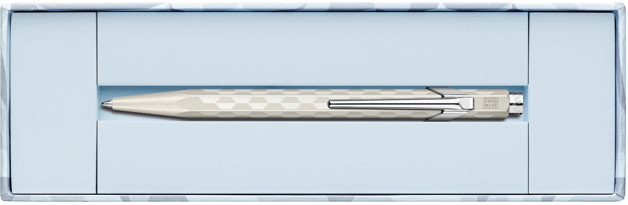 Pour la période de Noël, Caran d'Ache vous invite à un voyage à travers les montagnes enneigées avec l'édition spéciale Alpine Frost. Inspirée par la pureté des lacs gelés et la silhouette des sommets blancs, cette collection aux tons blanc nacré et bleu polaire capture toute la magie de l'hiver. Le stylo à bille 849™ porte des motifs géométriques qui rappellent des cristaux de glace aux reflets glacés.
