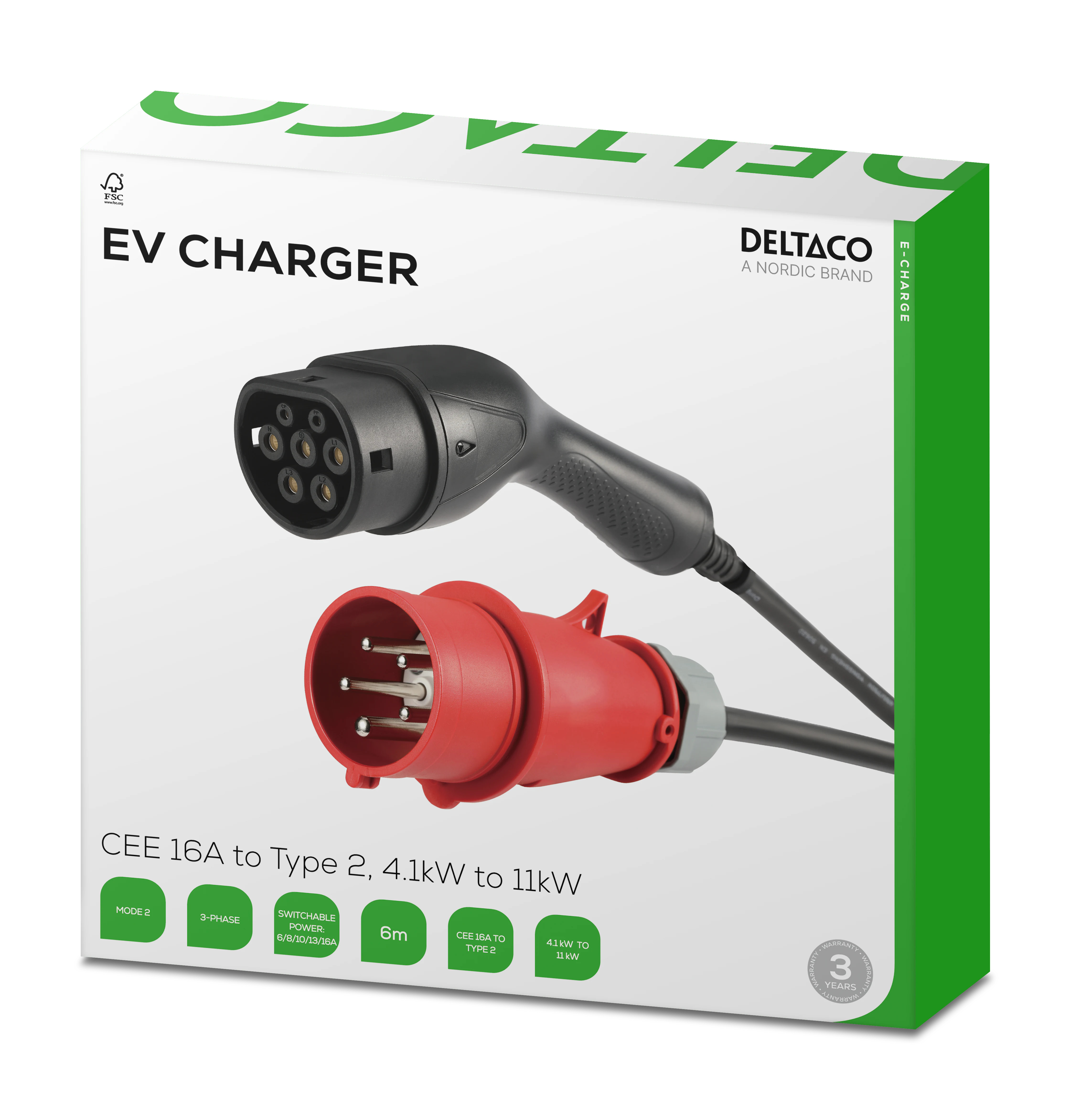 DELTACO e-Charge,cable type 2-type 2 EV-3215 3 phase, 16A, 5M