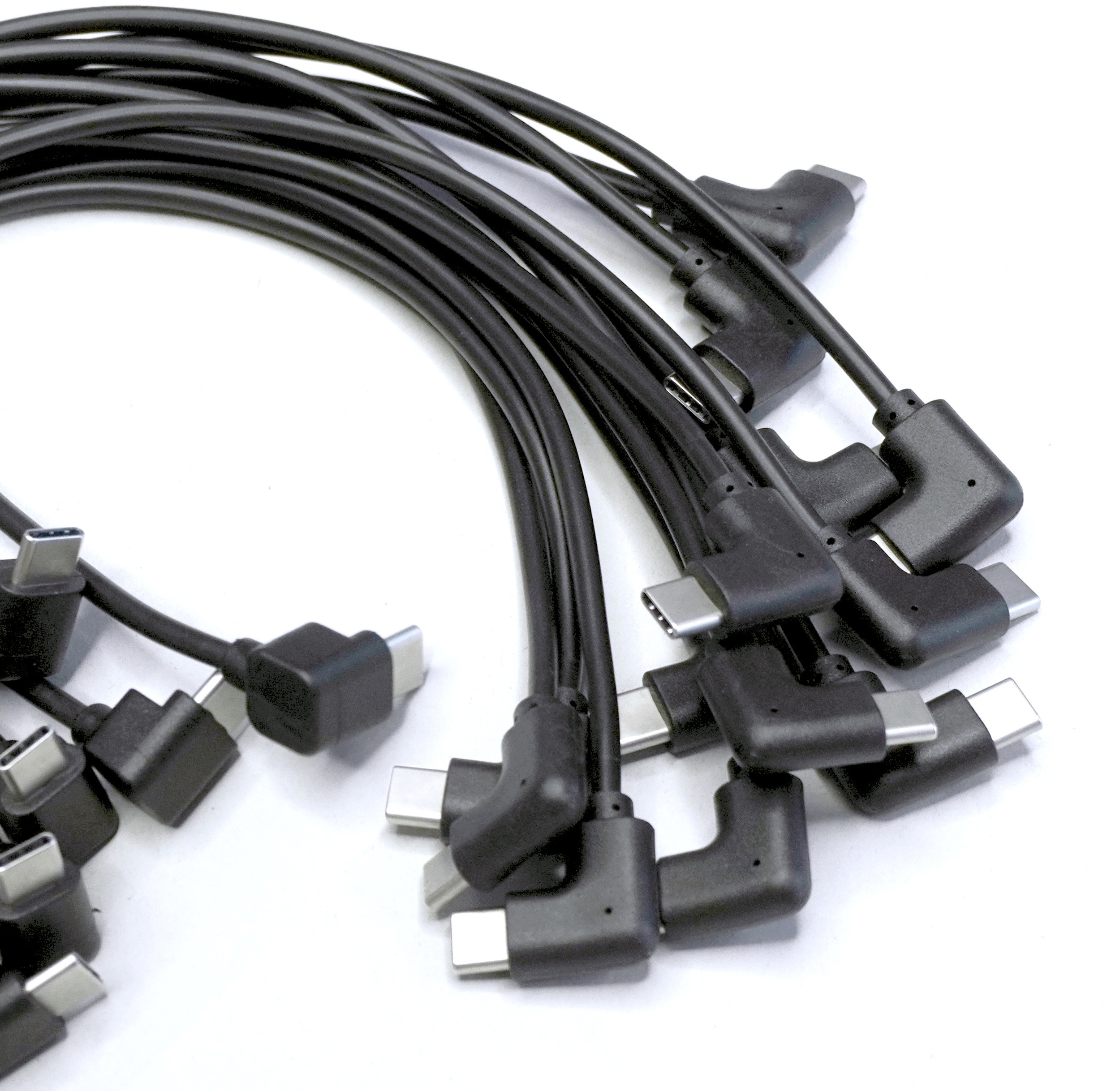 • 14 câbles d'alimentation USB-C fournis, coudés des deux côtés pour une utilisation optimale de l'espace
