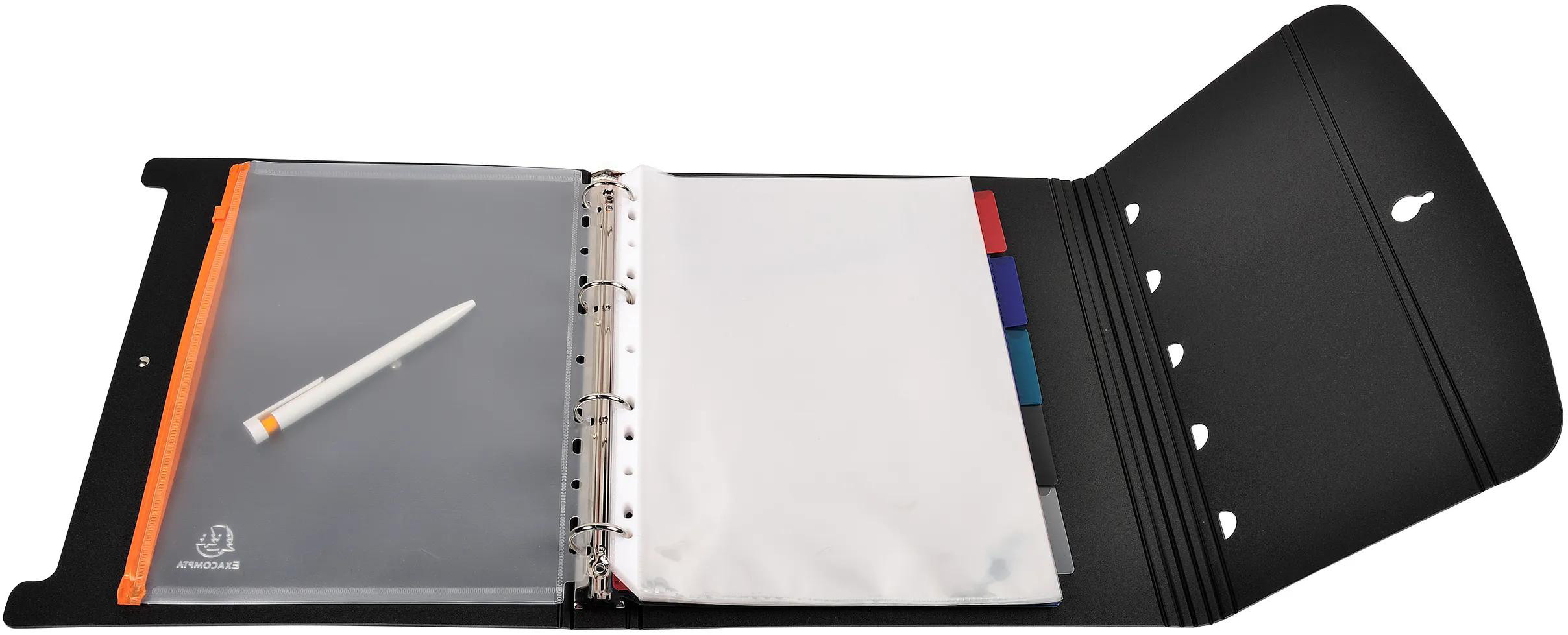 Exactive, un rangement nomade et respectueux de l’environnement. Matériau moderne, composé à 80% de polypropylène recyclé. À la fois léger et robuste. Chemise de présentation et de classement. Peut être maintenu à la verticale grâce à un système ingénieux.
