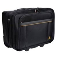 Exactive, trolley business Exatrolley Sac de voyage à roulettes pour le transport d'ordinateurs portables jusqu'à 15,6 pouces (38x29x5 cm). Dimensions : 45x25,5x39,5 cm. En tissu polyester. Avec poignée télescopique dans un compartiment à fermeture éclair. Avec boucle au dos pour fixer le sac à la poignée télescopique d'une valise. Accepté comme bagage à main par la plupart des compagnies aériennes. 4 compartiments séparés pour ranger tablette, smartphone, stylos, etc. Le smartphone ou la tablette peut être rechargé(e) à l'aide du port USB et du câble intégrés (2 ports USB et 1 port micro-USB, chargeur non inclus). Fermeture sécurisée grâce au cadenas TSA intégré avec combinaison de chiffres.