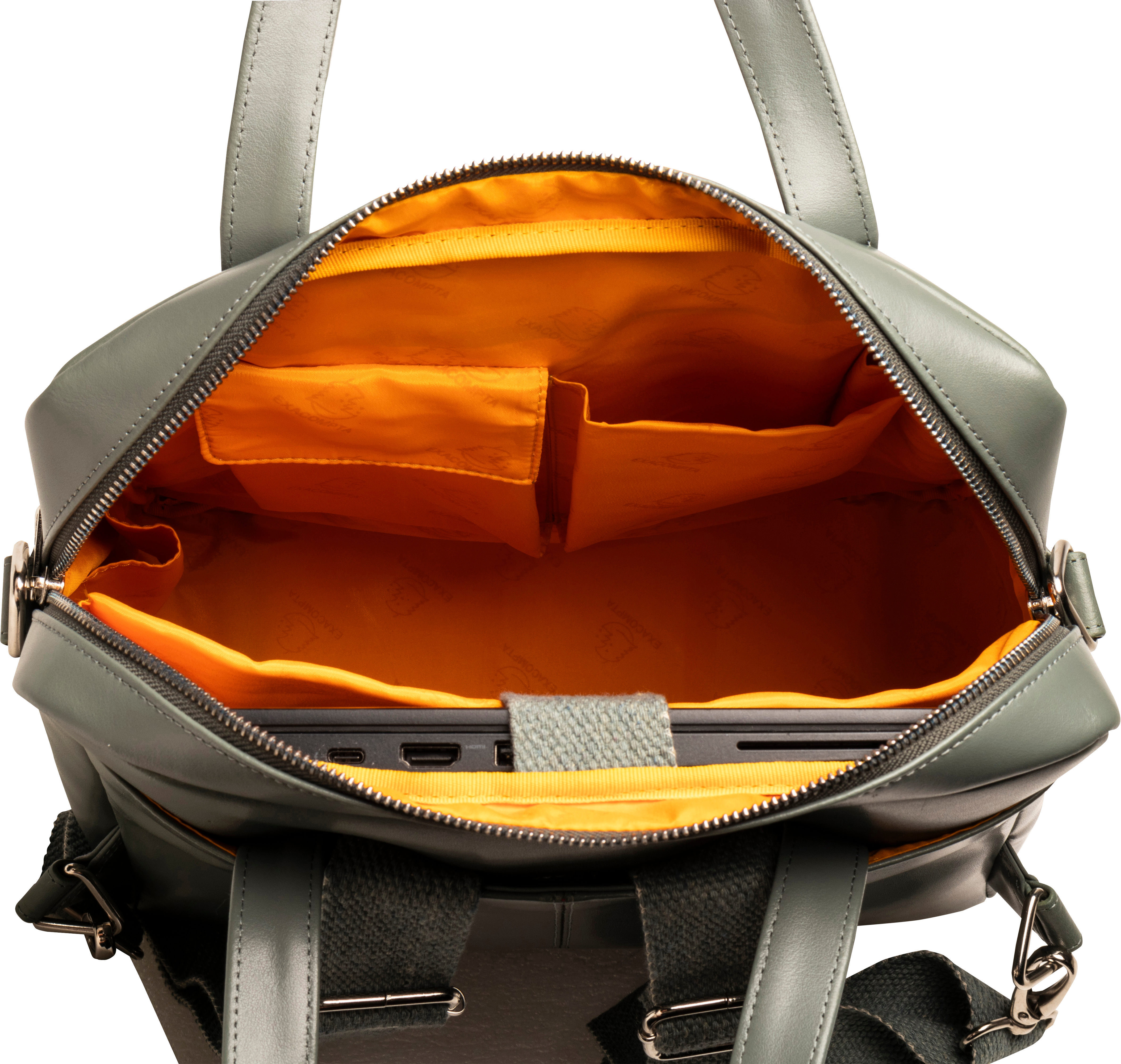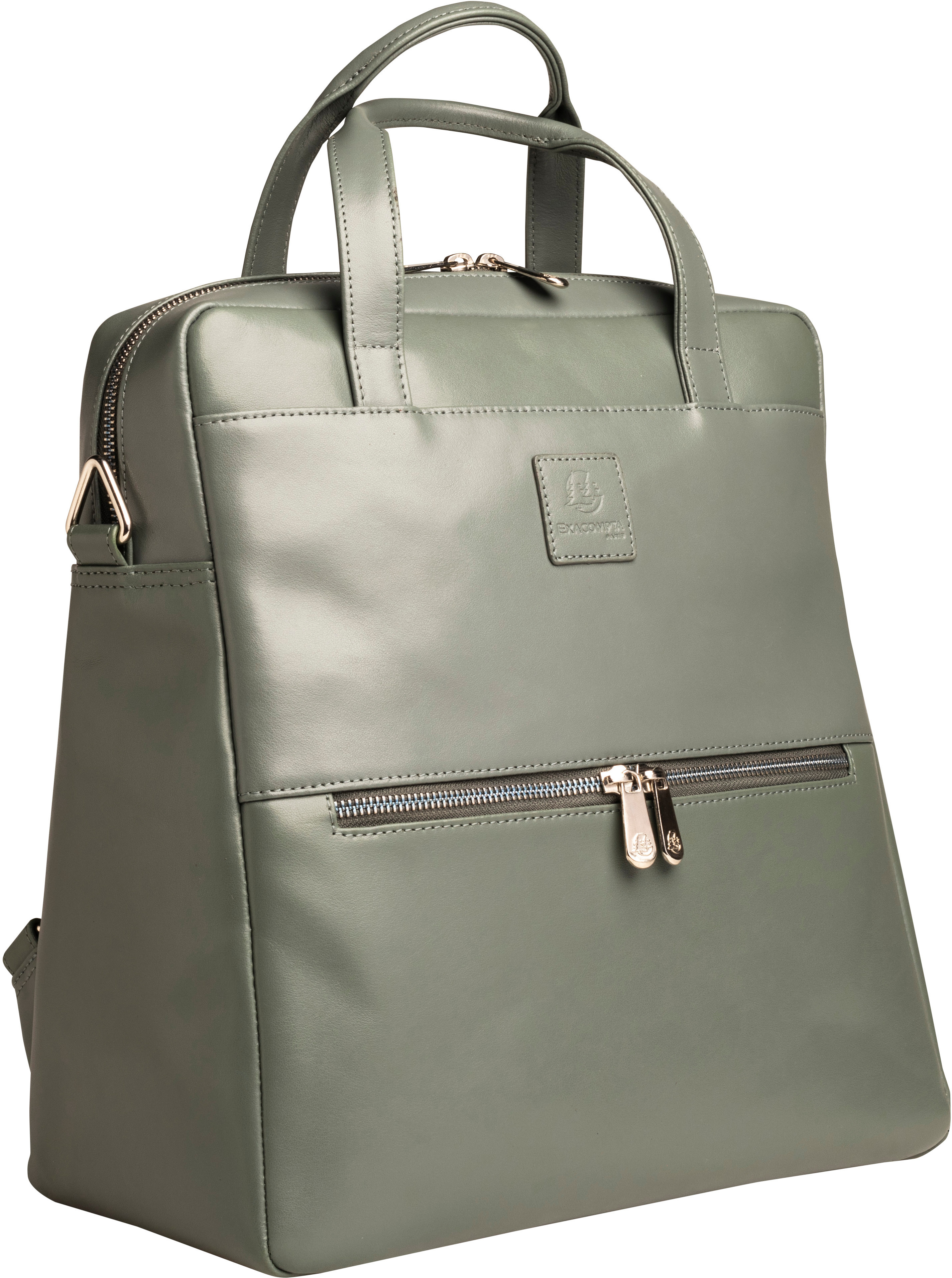 Sac à dos pour ordinateur portable Lady Exactive, cuir, 33x35x16 cm En accord avec le style sobre et moderne de la gamme Exactive, ce sac à dos aux lignes féminines offre un excellent compromis entre l'élégance d'un sac à main et la praticité d'un sac pour ordinateur portable. Fabriqué en cuir de vache lisse de haute qualité, ce sac à dos est résistant à l'eau et à l'usure et dispose de nombreux compartiments dans lesquels vous pouvez organiser et transporter votre ordinateur portable, votre tablette, vos documents, vos carnets de notes ou vos accessoires. Pour les ordinateurs portables jusqu'à 14 pouces. Compartiment principal avec deux grandes poches rembourrées, spécialement conçues pour protéger un ordinateur portable et une tablette, et deux petites poches pour un smartphone ou d'autres accessoires. Avec de la place pour un parapluie ou une bouteille d'eau. Avec une poche zippée à l'avant et une poche à fermeture magnétique à l'arrière. Finition en métal de couleur argentée. Le sac à dos pour ordinateur portable est très polyvalent et peut être porté à la main, à l'épaule ou en sac à dos. La bandoulière est amovible et les 2 bretelles réglables peuvent être cachées à l'arrière du sac.