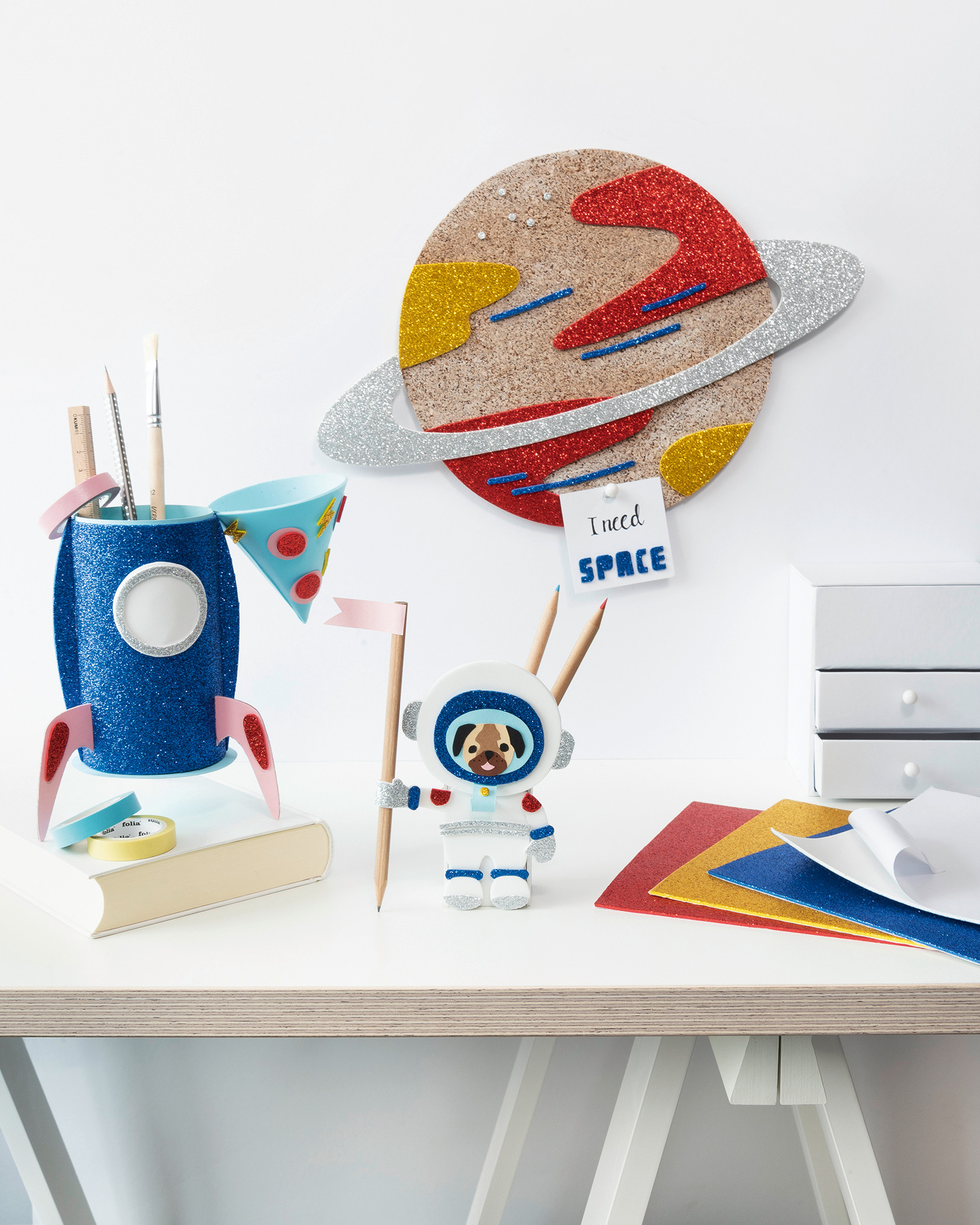 Mit selbstklebendem Glitter-Moosgummi sparst du dir den Kleber. Ob Papier, Ton oder Kork - das Moosgummi hält fast auf jedem Untergrund und eignet sich prima für Upcyclings von Milchtüten und Co.