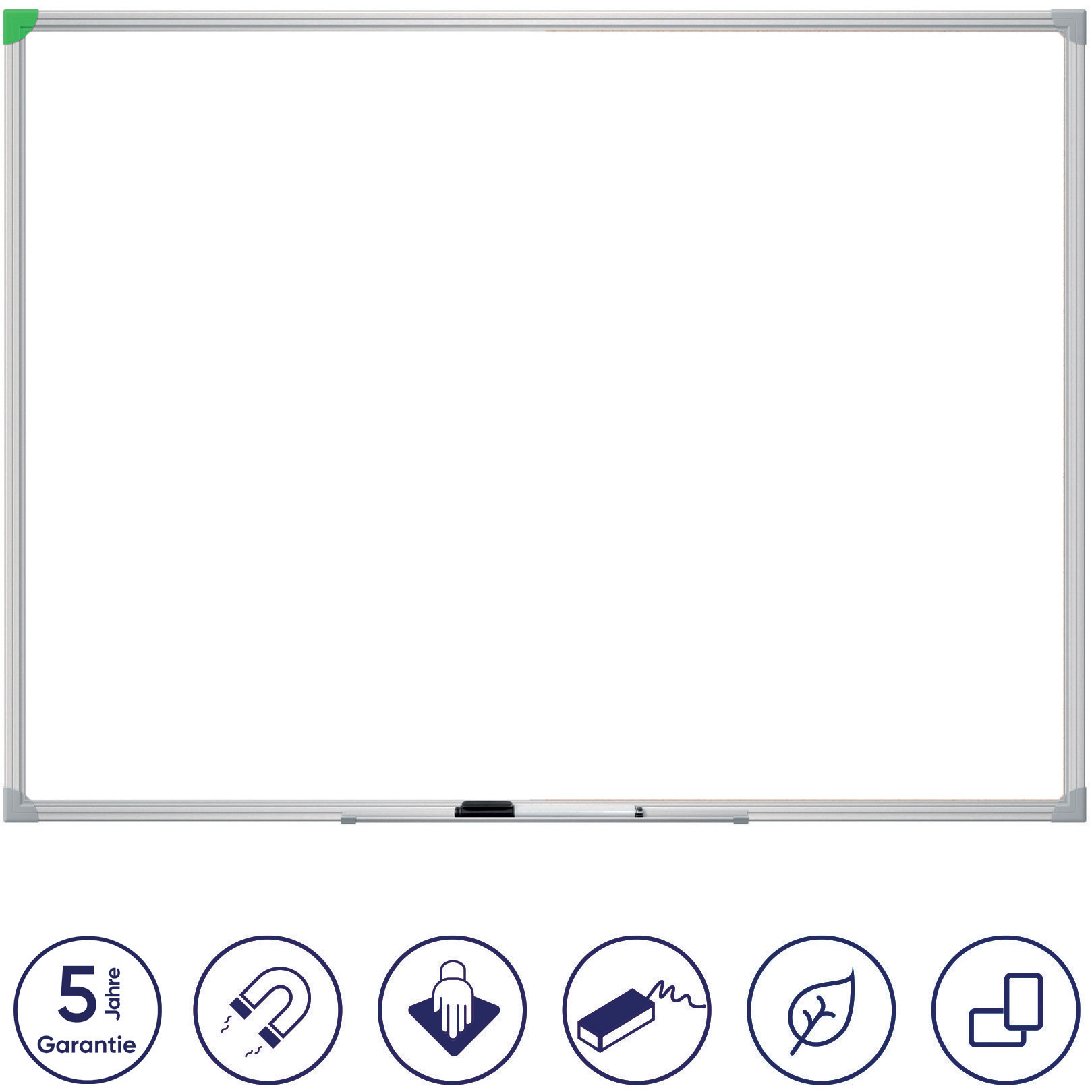La fabrication européenne des produits U-Act!Line® avec des matériaux provenant également d'Europe réduit les distances de transport et le processus de production est certifié ISO 14001. La surface en acier laqué est magnétique, inscriptible et effaçable à sec ou avec un chiffon humide. Elle est idéale comme tableau magnétique pour afficher facilement des notes, des mémos et des photos. Et pour des notes à court terme, elle convient aux marqueurs pour tableaux noirs FRANKEN à encre à base d'alcool. Nos tableaux blancs U-Act!Line portent l'écolabel européen, reconnu dans le monde entier, qui garantit des performances environnementales exceptionnelles et un impact réduit sur l'environnement tout au long du cycle de vie du produit. Cadre en aluminium anodisé argent, y compris bac de rangement et accessoires pour la fixation murale (suspension pour miroir, vis et chevilles). Le montage est simple, sans problème et peut se faire au choix en format vertical ou horizontal. Garantie du fabricant de 5 ans.