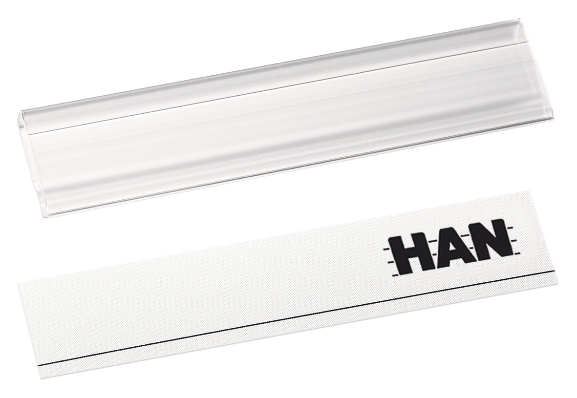 Clips d'étiquetage universels à enficher. Planche d'étiquettes complète (au total 27 étiquettes) incluse. Pour une présentation professionnelle sur votre lieu de travail.