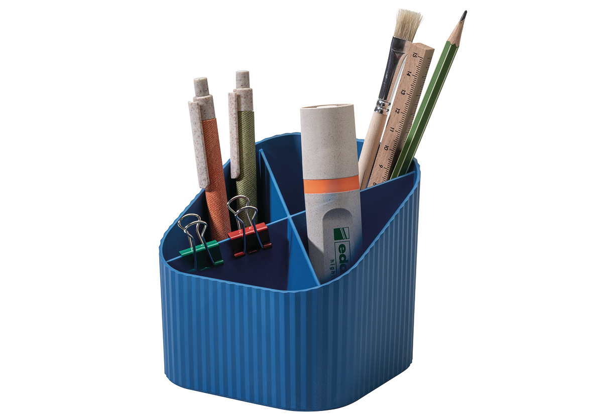 Avec le carquois KARMA, l'ordre règne sur le bureau. La gamme HAN KARMA est produite avec des matériaux post-consommation (produits en plastique déjà utilisés). Distingué par le certificat environnemental : L'ANGE BLEU. Les 4 compartiments de différentes hauteurs offrent beaucoup de place pour les crayons, les pinceaux et de nombreux autres ustensiles. Pour le bureau ou la maison. Le carquois de bureau KARMA est résistant et durable. Il s'adapte à tous les produits de la série KARMA. Fabriqué en Allemagne.