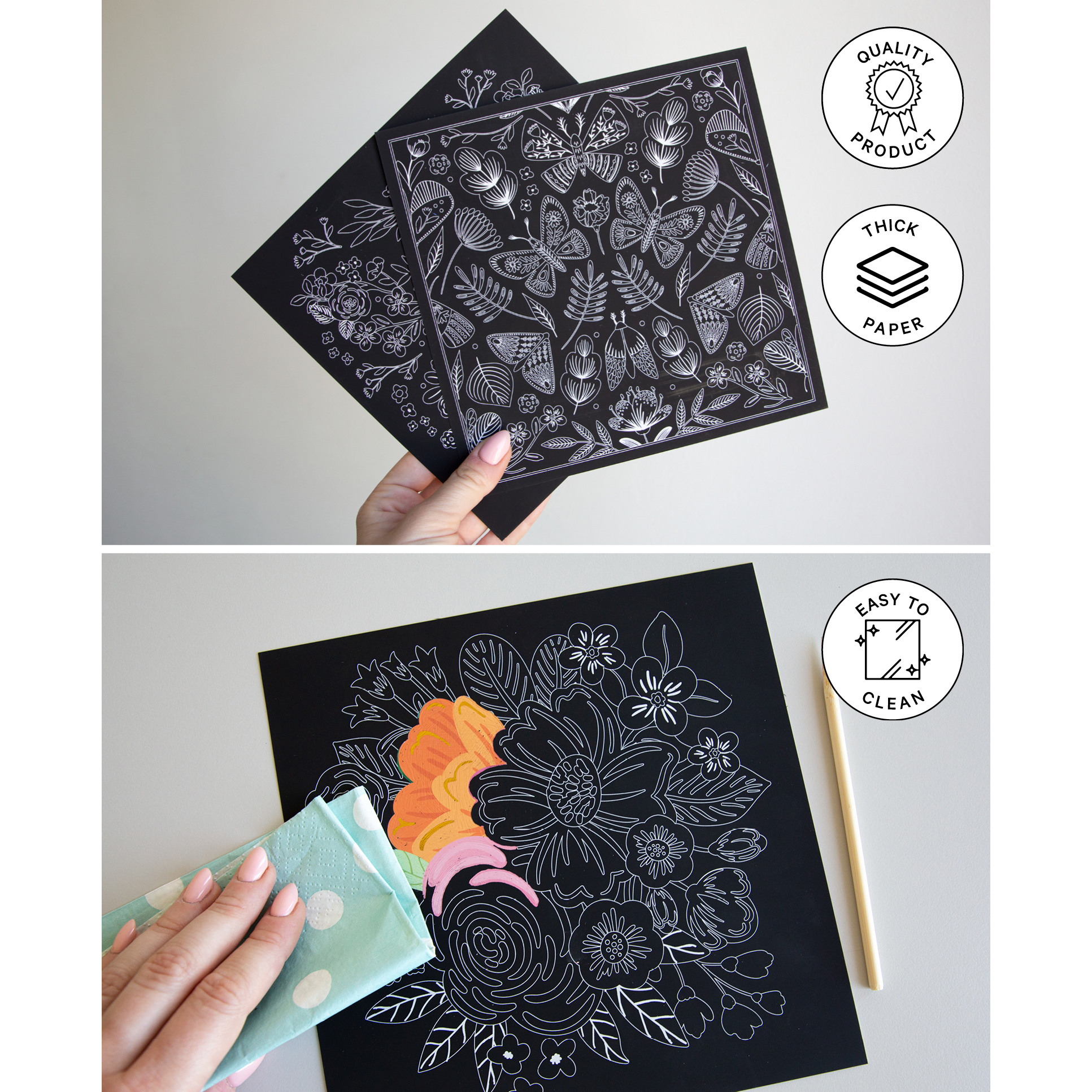 Set à gratter, papillons, 2 pces