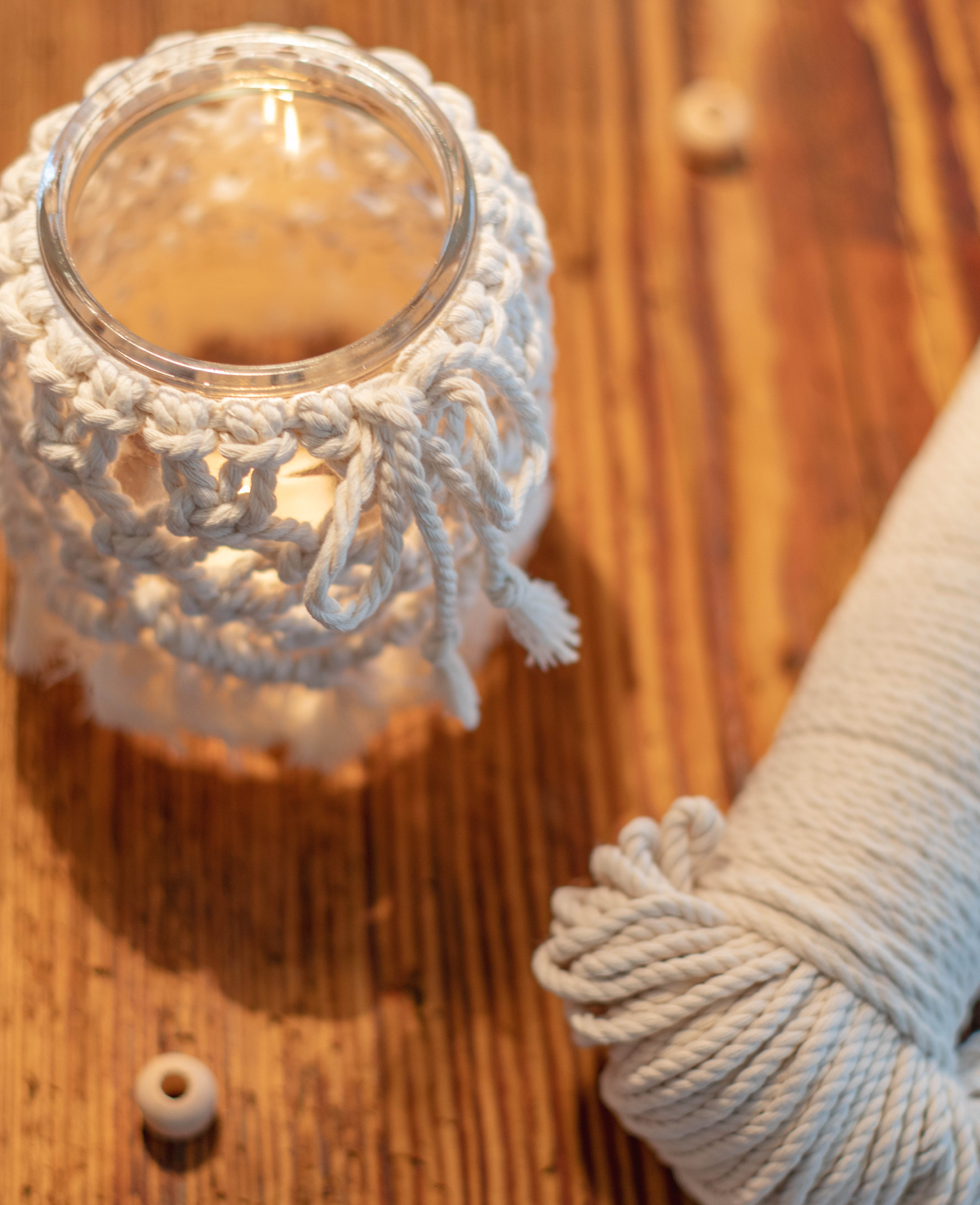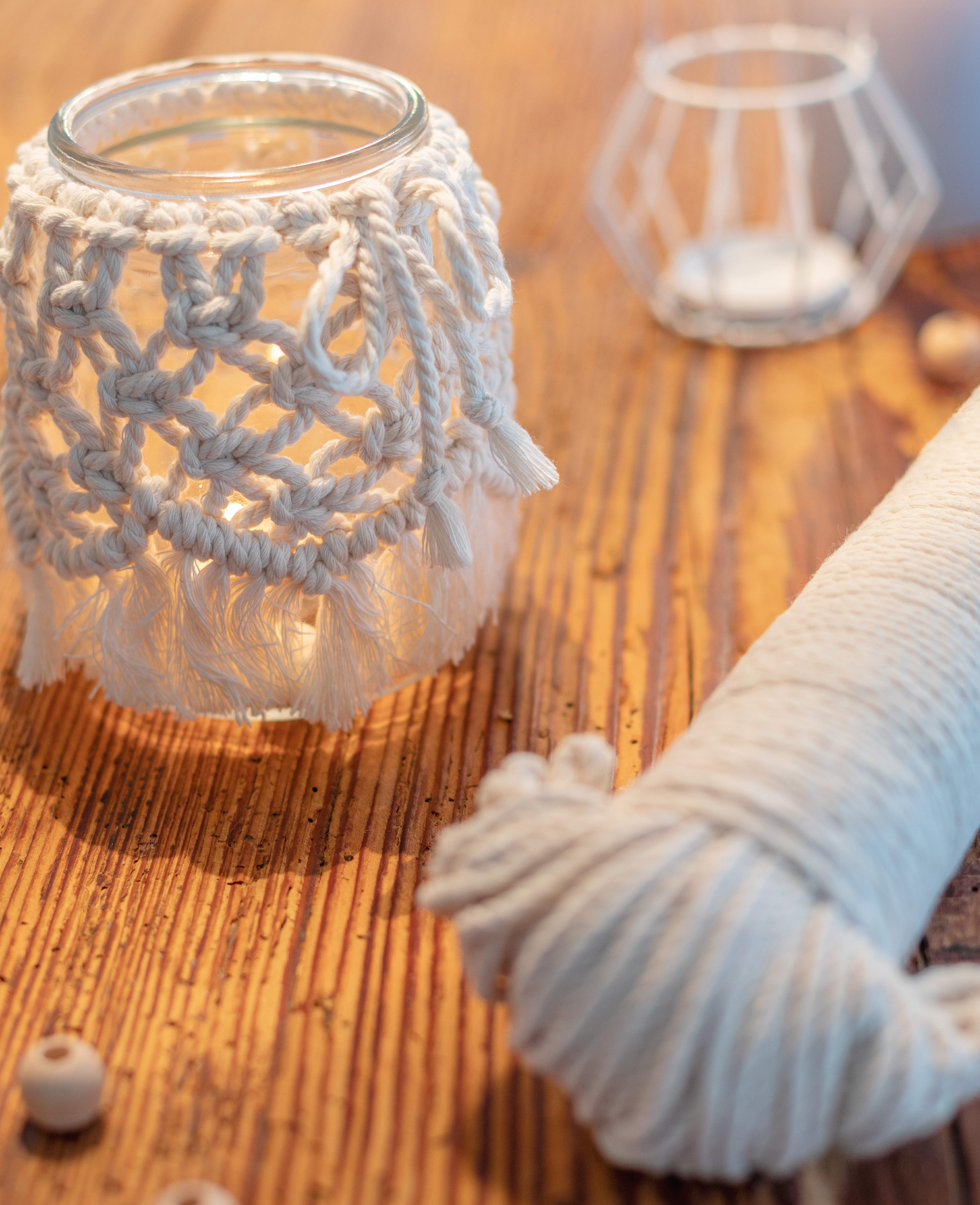 1x fil "Macrame rope 3 mm" cream, 1x verre, 1x bougie de ...