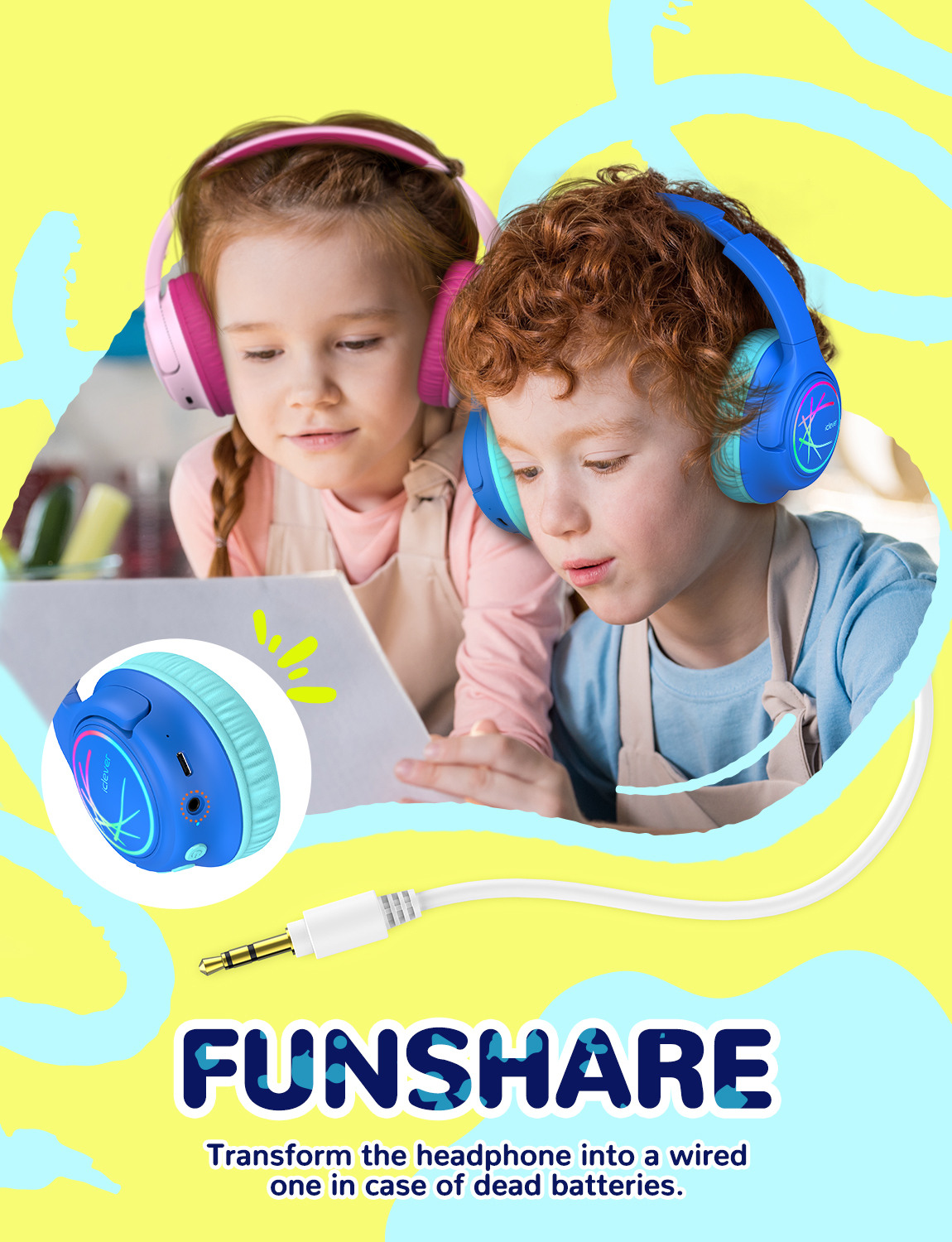 Les écouteurs Bluetooth iClever BTH18 pour enfants ont été conçus pour combiner un plaisir musical sûr avec un design adapté aux enfants. Ils offrent une limitation du volume en continu, sélectionnable entre 74 dBA et 85 dBA, et garantissent ainsi une protection auditive fiable. Avec une autonomie impressionnante allant jusqu'à 43 heures (LED éteinte) ou environ 11 heures (LED active), ils garantissent une utilisation à long terme - que ce soit lors de longs voyages, pour étudier ou se détendre. Les écouteurs sont légers, pliables et équipés d'oreillettes pivotantes pour un ajustement précis - idéal pour les enfants au quotidien. Bluetooth 5.3 assure une connexion sans fil stable, tandis qu'un microphone intégré et une prise AUX de 3,5 mm offrent une flexibilité supplémentaire.
