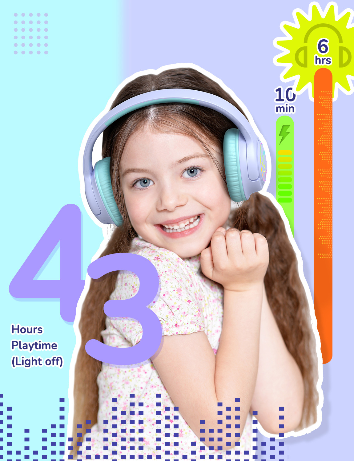 Les écouteurs Bluetooth iClever BTH18 pour enfants ont été conçus pour combiner un plaisir musical sûr avec un design adapté aux enfants. Ils offrent une limitation du volume en continu, sélectionnable entre 74 dBA et 85 dBA, et garantissent ainsi une protection auditive fiable. Avec une autonomie impressionnante allant jusqu'à 43 heures (LED éteinte) ou environ 11 heures (LED active), ils garantissent une utilisation à long terme - que ce soit lors de longs voyages, pour étudier ou se détendre. Les écouteurs sont légers, pliables et équipés d'oreillettes pivotantes pour un ajustement précis - idéal pour les enfants au quotidien. Bluetooth 5.3 assure une connexion sans fil stable, tandis qu'un microphone intégré et une prise AUX de 3,5 mm offrent une flexibilité supplémentaire.