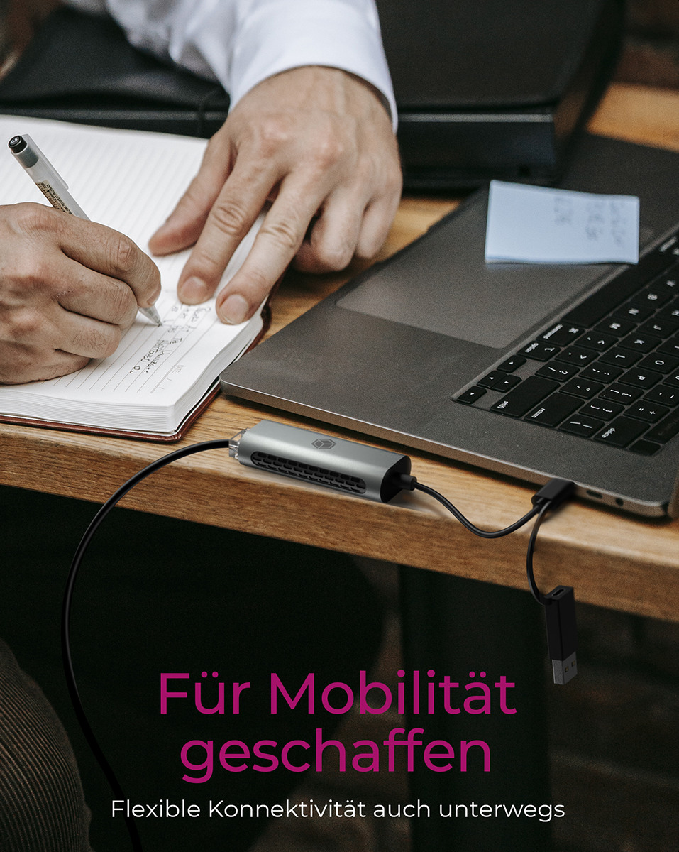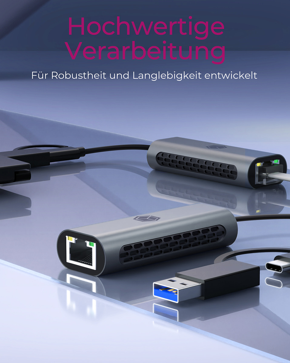 Profiter d'Internet sans restrictions : Avec un taux de transfert de données pouvant atteindre 2,5 Gbit/s, notre adaptateur vous offre une connexion ultra-rapide. Vous pouvez ainsi télécharger sans problème des fichiers volumineux, regarder des films et des séries en streaming en haute résolution ou faire l'expérience des jeux en ligne sans saccades. e connecteur combiné pratique USB Type-C® avec adaptateur USB Type-A permet de connecter l'IBLAN301-C3 à presque tous les ordinateurs portables, ordinateurs de bureau et même aux tablettes et smartphones. Sans installation de pilote et compatible avec tous les systèmes d'exploitation, vous pouvez démarrer directement par Plug & Play. L'adaptateur réseau est fabriqué en aluminium de haute qualité et est très compact. L'adaptateur trouve ainsi sa place dans presque toutes les mallettes de service, les sacs à dos ou les bagages. Vous pouvez ainsi établir rapidement et facilement une connexion Internet câblée, que vous soyez chez vous ou en déplacement.