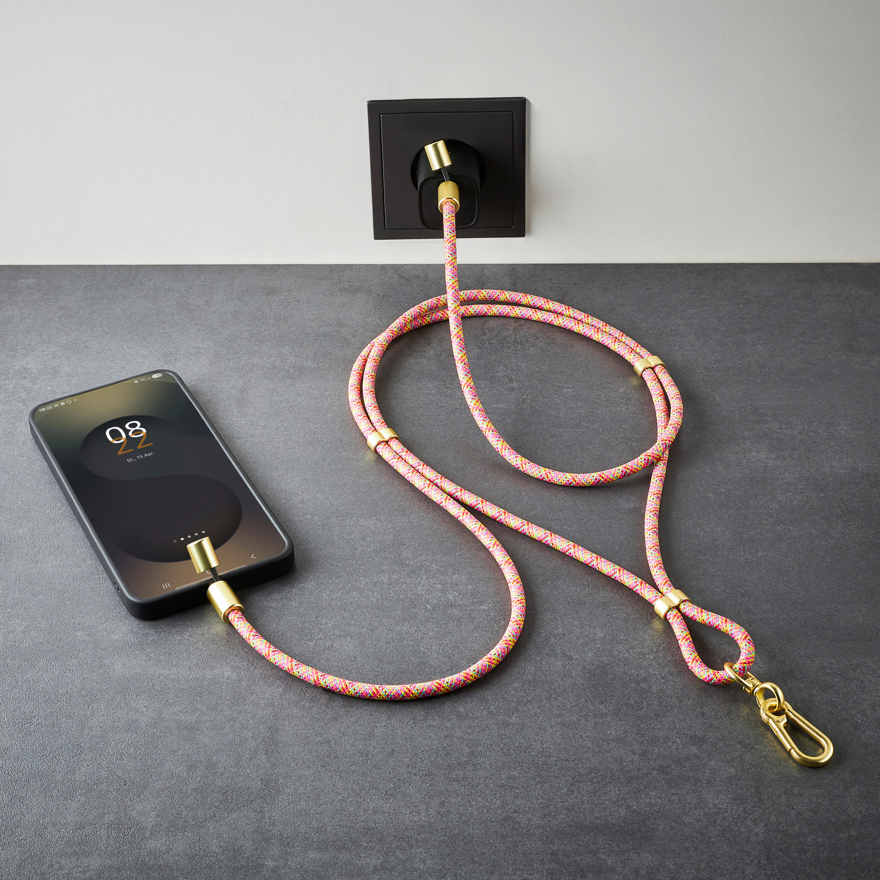 L'Intenso Charging Lanyard combine un design stylé et une technologie de chargement de pointe. En tant que chaîne pratique pour téléphone portable, il garde ton smartphone à portée de main, tout en servant de câble USB-C à USB-C performant avec une puissance de charge allant jusqu'à 60 W et une transmission de données de 480 Mbps. Léger, robuste et disponible en six couleurs tendance, il est le compagnon idéal pour les déplacements - à la fois fonctionnel, confortable et élégant.