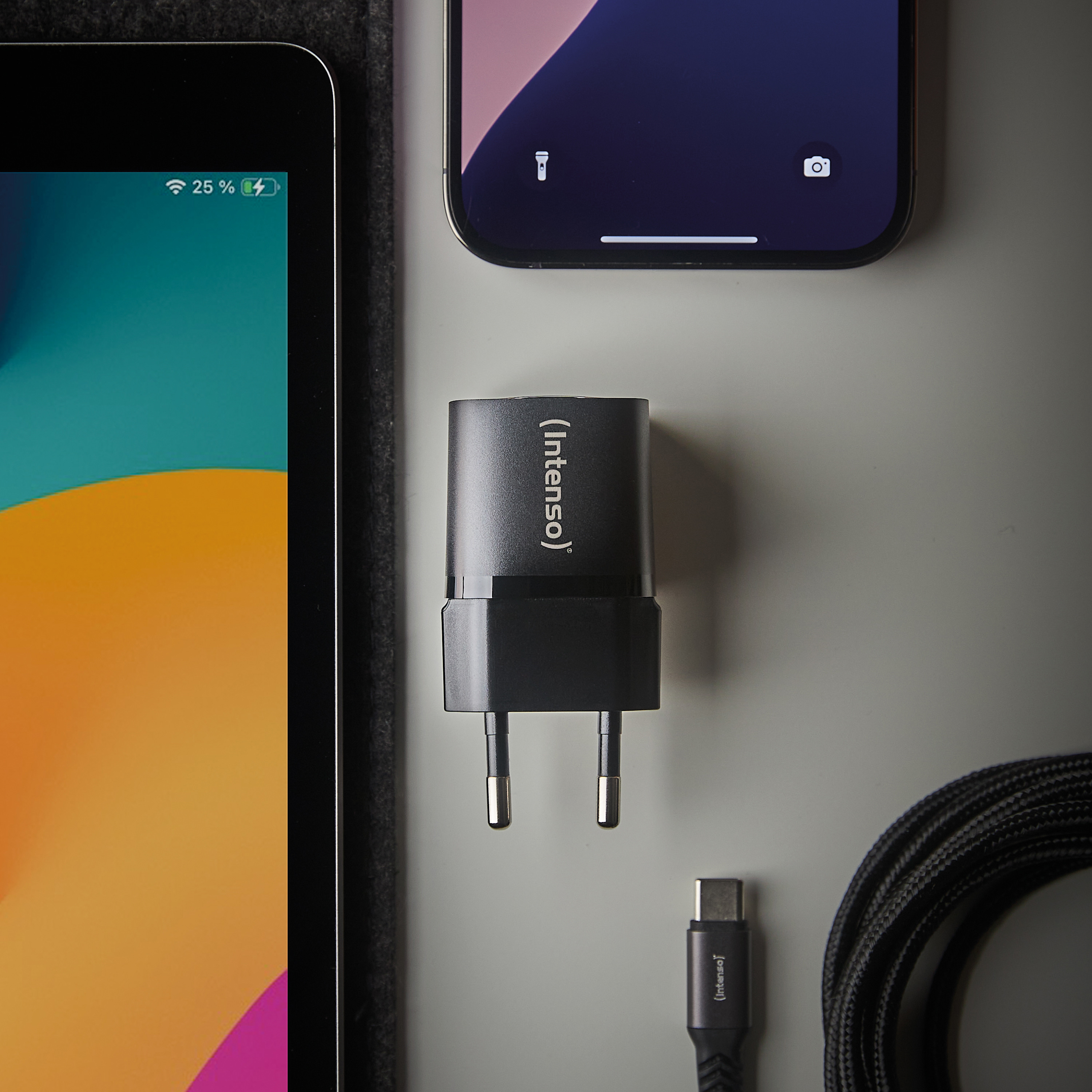 INTENSO Power Charger 30W GaN 1x USB-C 7803052 +Cable USB-C - Lightning white