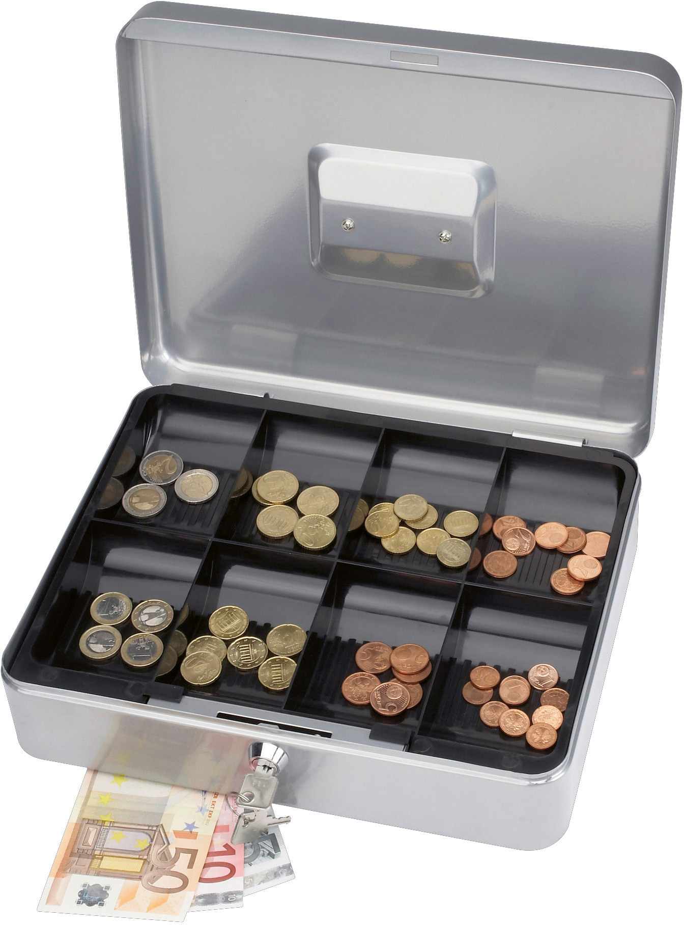 Le coffret à monnaie de MAUL est en acier laqué avec insert à pièces en plastique. La serrure à cylindre garantit la sécurité de votre argent.