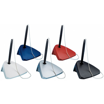 Design moderne, pour les comptoirs et les bureaux publics, les banques et les administrations, bonne assise, mine de stylo indélébile, socle en matière plastique incassable, peut être vissé sur la surface de la table.