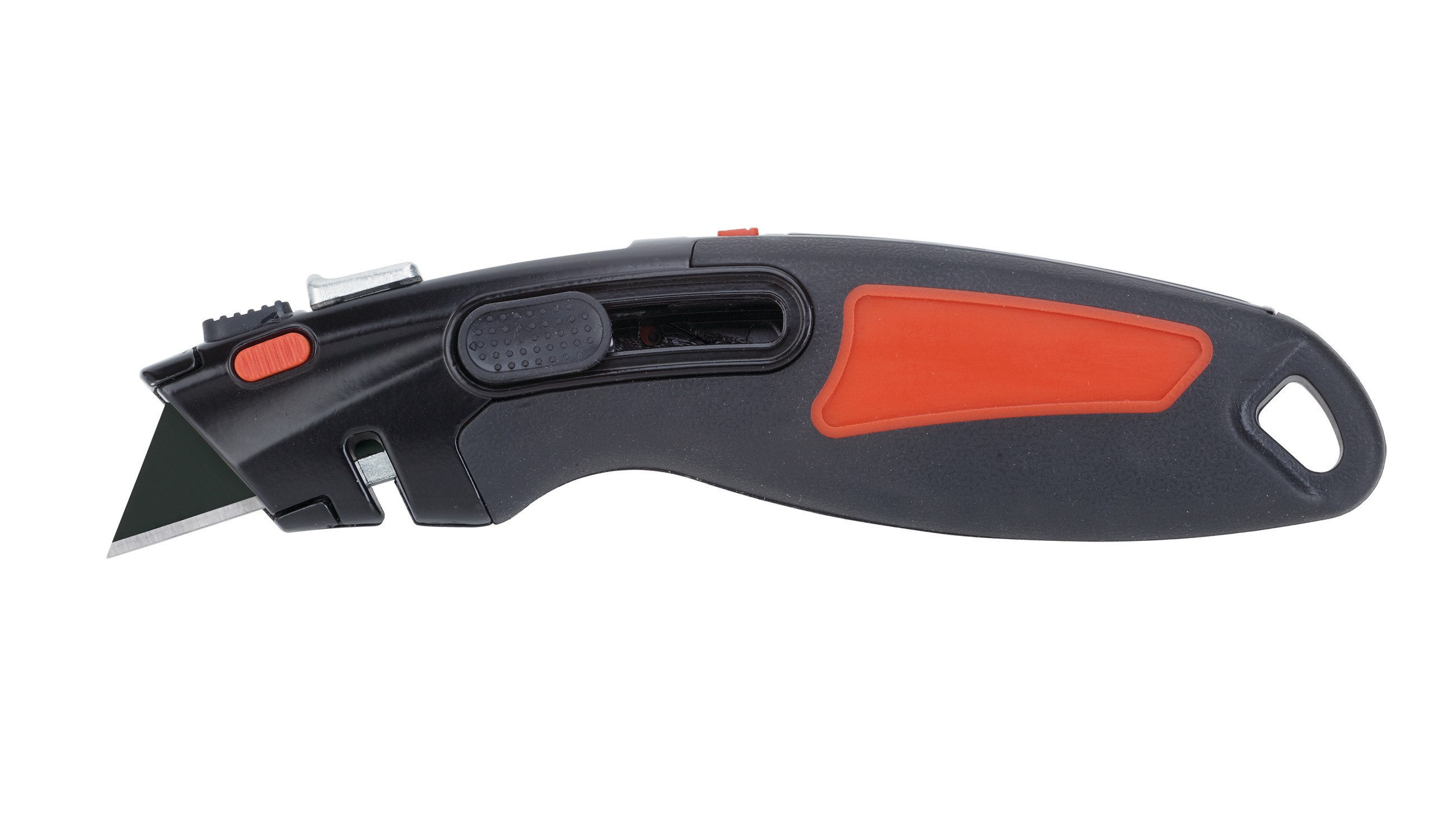 Fonction de sécurité : élément coulissant avant avec retrait automatique de la lame. Approuvé par la norme GS. Robuste : boîtier stable en zinc moulé sous pression, guide-lame en zinc moulé sous pression. Pratique : fonction coupe-ficelle sur la face inférieure, convient également pour les ficelles d'emballage. Lame noire, pouvant être fixée dans trois positions de crantage (rentrée, à moitié et complètement sortie), en acier carbone particulièrement dur, utilisable des deux côtés. Remplacement simple et sans outil de la lame. Comprend un compartiment à lames de rechange pouvant contenir jusqu'à 4 lames. Forme ergonomique : zone de préhension caoutchoutée avec frein de glissement en couleurs de signalisation. Peut également être accroché ou suspendu. Utilisable de manière universelle : Dans l'entrepôt, l'atelier, le bureau ou pour le bricolage.