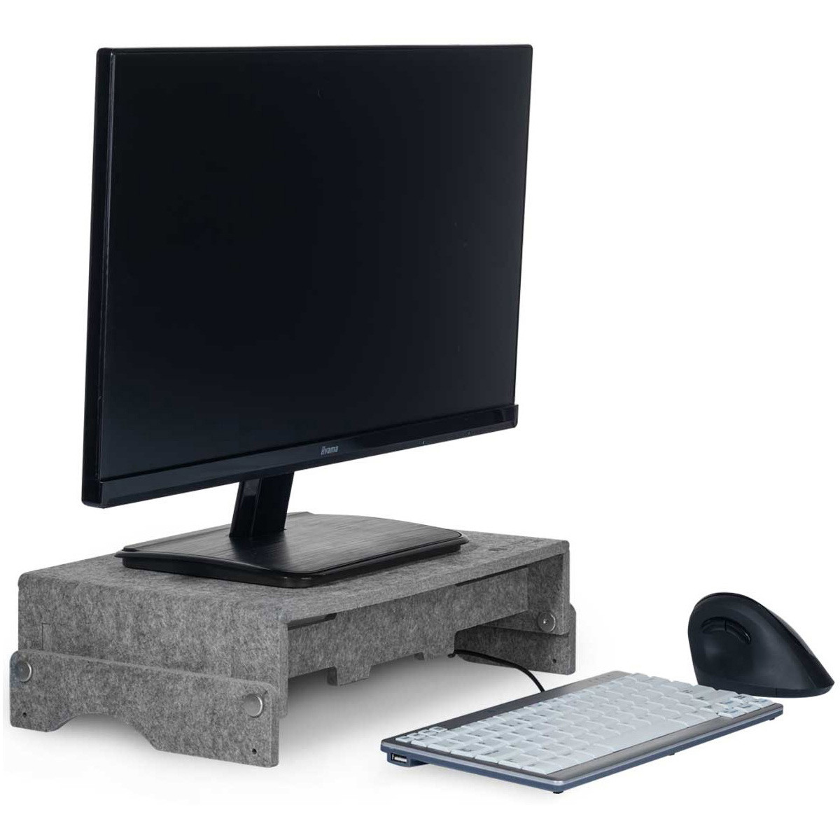 Avec le Q-Riser 110, vous pouvez positionner vos écrans à une hauteur confortable. Cela évite une charge excessive des muscles des épaules et du cou et optimise votre confort de lecture. Ce support d'écran peut être réglé à l'une des deux hauteurs. Il y a beaucoup de place sous le Q-Riser pour votre clavier. En outre, ce support d'écran dispose de guides de câbles qui vous permettent de dissimuler proprement les câbles de votre écran. Le Q-Riser 110 convient aux écrans plats jusqu'à 17 pouces.Dimensions (L x H x P) : 37.5 x 7.5 x 25 cm - Matériau : feutre PET