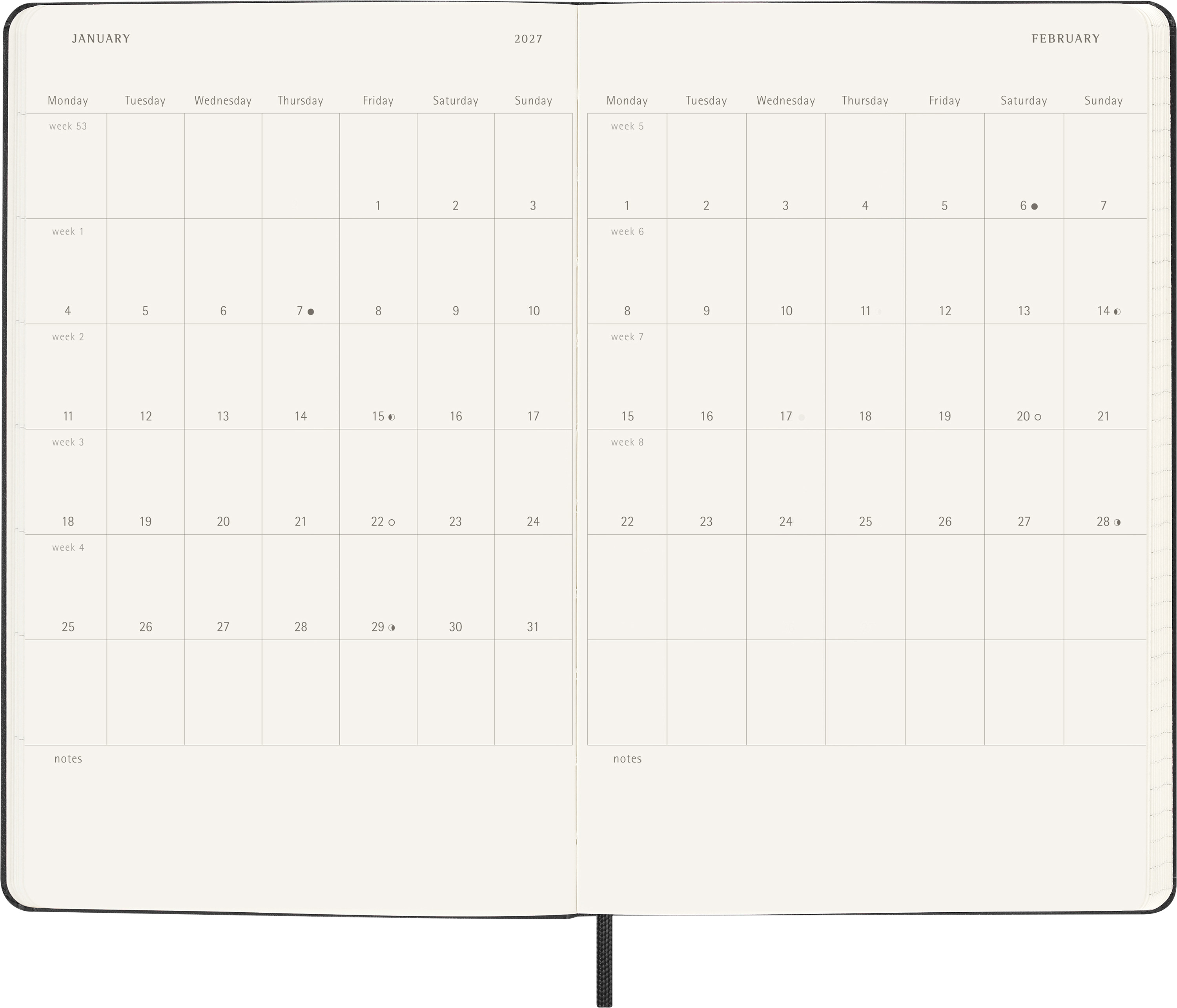 MOLESKINE Agenda de notes semaine 26/27 DSB18WN4Y27 18M ligné SC noir 19x25cm