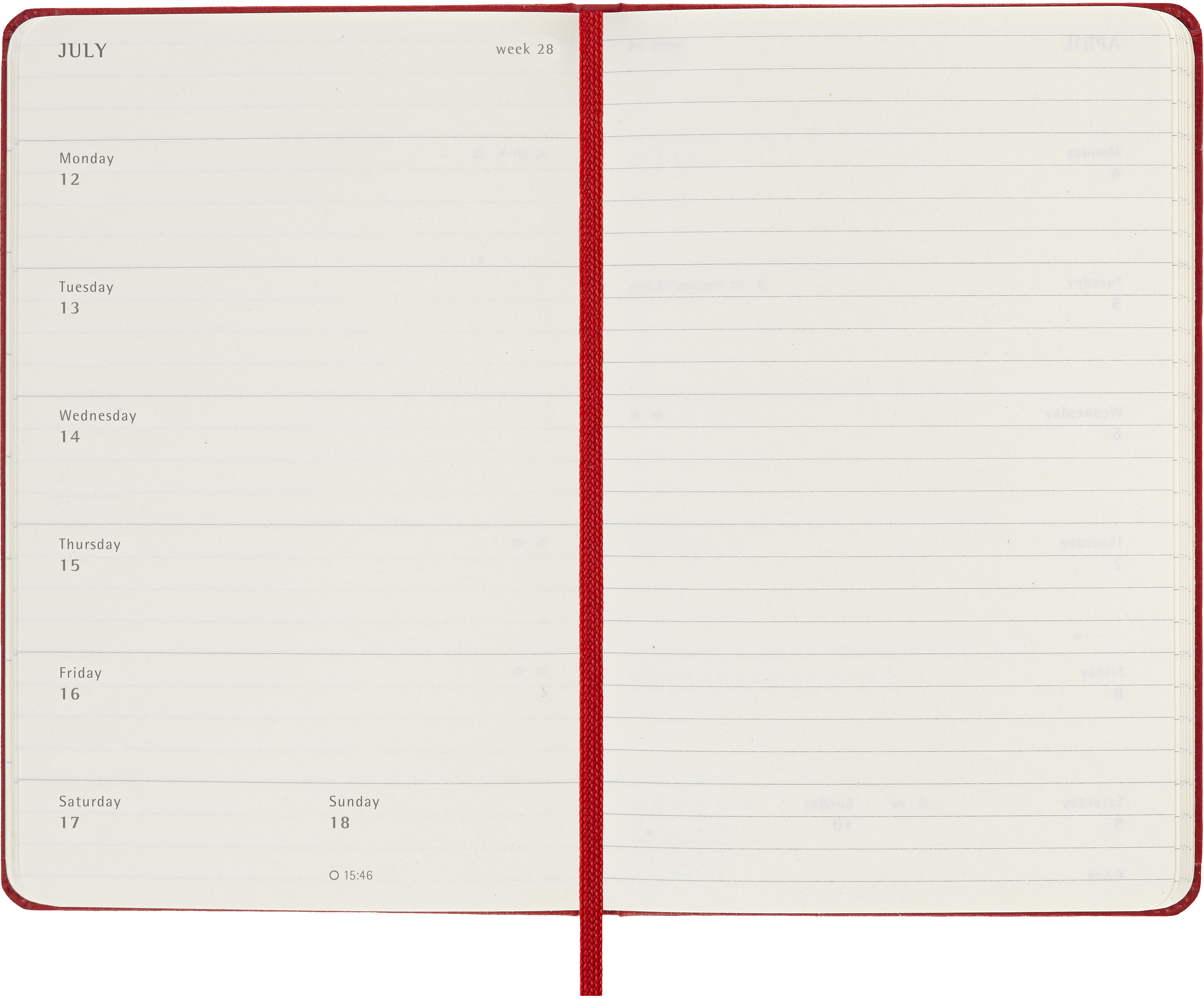 L'agenda hebdomadaire 18 mois de Moleskine va de juillet à décembre. Avec les rendez-vous de la semaine sur la page de gauche et une page lignée à droite avec de la place pour les notes et les idées, ce type de calendrier très apprécié est parfait pour les étudiants, les enseignants et les hommes d'affaires.