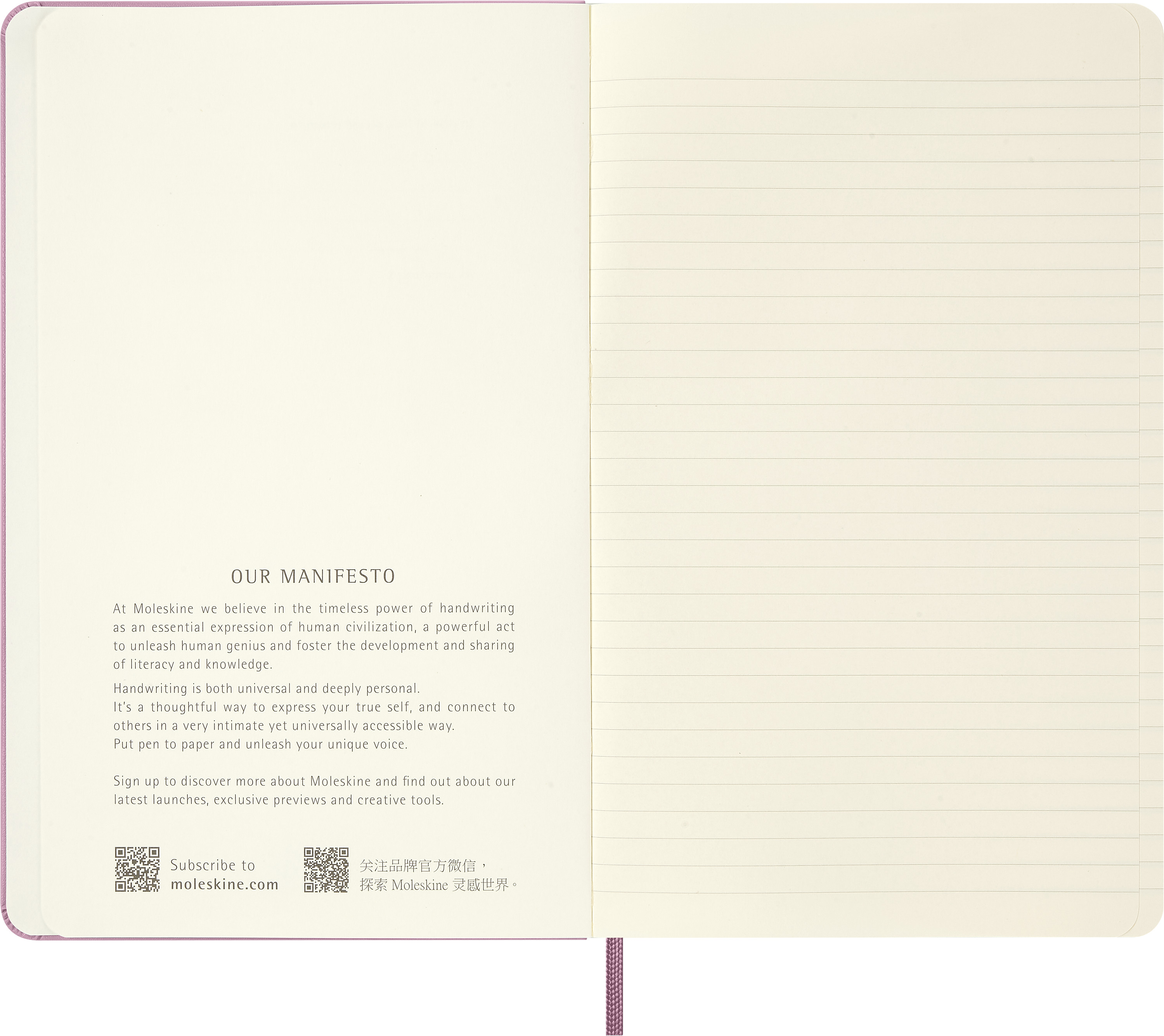 Une bonne nouvelle pour les penseurs : le stylo sur le papier éveille des pulsions créatives. Notre croyance de longue date dans le pouvoir de transformation du stylo et du papier est scientifiquement prouvée et permet d'apprendre plus vite et de mieux mémoriser les choses. C'est pourquoi la devise "unleashing my genius one page at a time" (laisser libre cours à mon génie sur le papier, page après page) figure sur la couverture de cette collection saisonnière de carnets. Laissez-vous inspirer par ses nouvelles couleurs pour vous transformer et renouveler votre créativité. Ce carnet de notes en rose majestueux vous permettra de mieux vous concentrer et de mieux vous souvenir. Il est accompagné d'un signet assorti et d'un code QR qui mène à un monde d'aperçus précieux et relie l'acte personnel d'écrire à un voyage créatif partagé.