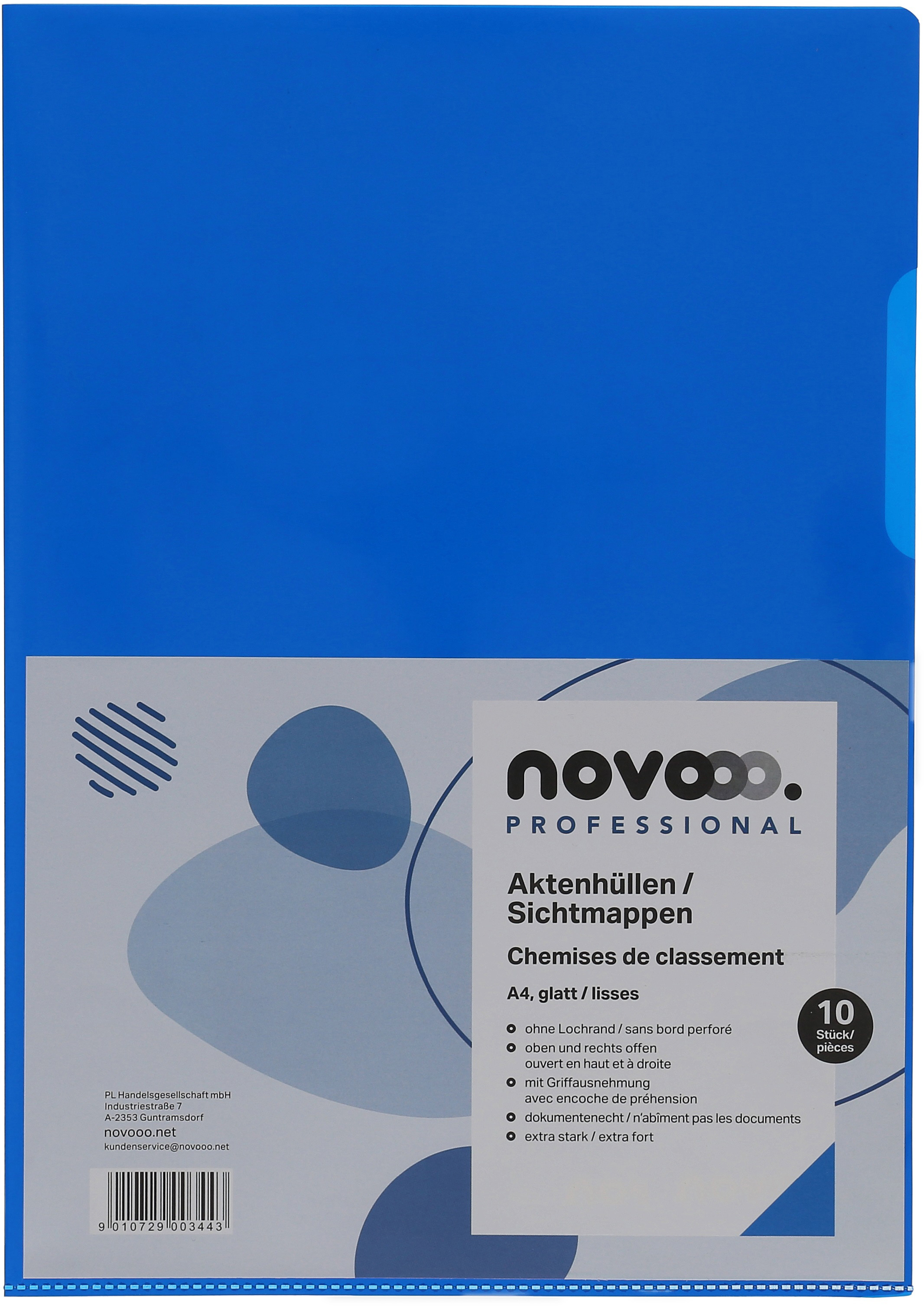 Les chemises transparentes NOVOOO sont fabriquées en polypropylène lisse d'une épaisseur de 140 µm. Les pochettes sont ouvertes en haut ainsi que sur le côté et ont une découpe de préhension pour faciliter le retrait. Les pochettes au format A4 permettent de conserver des documents.