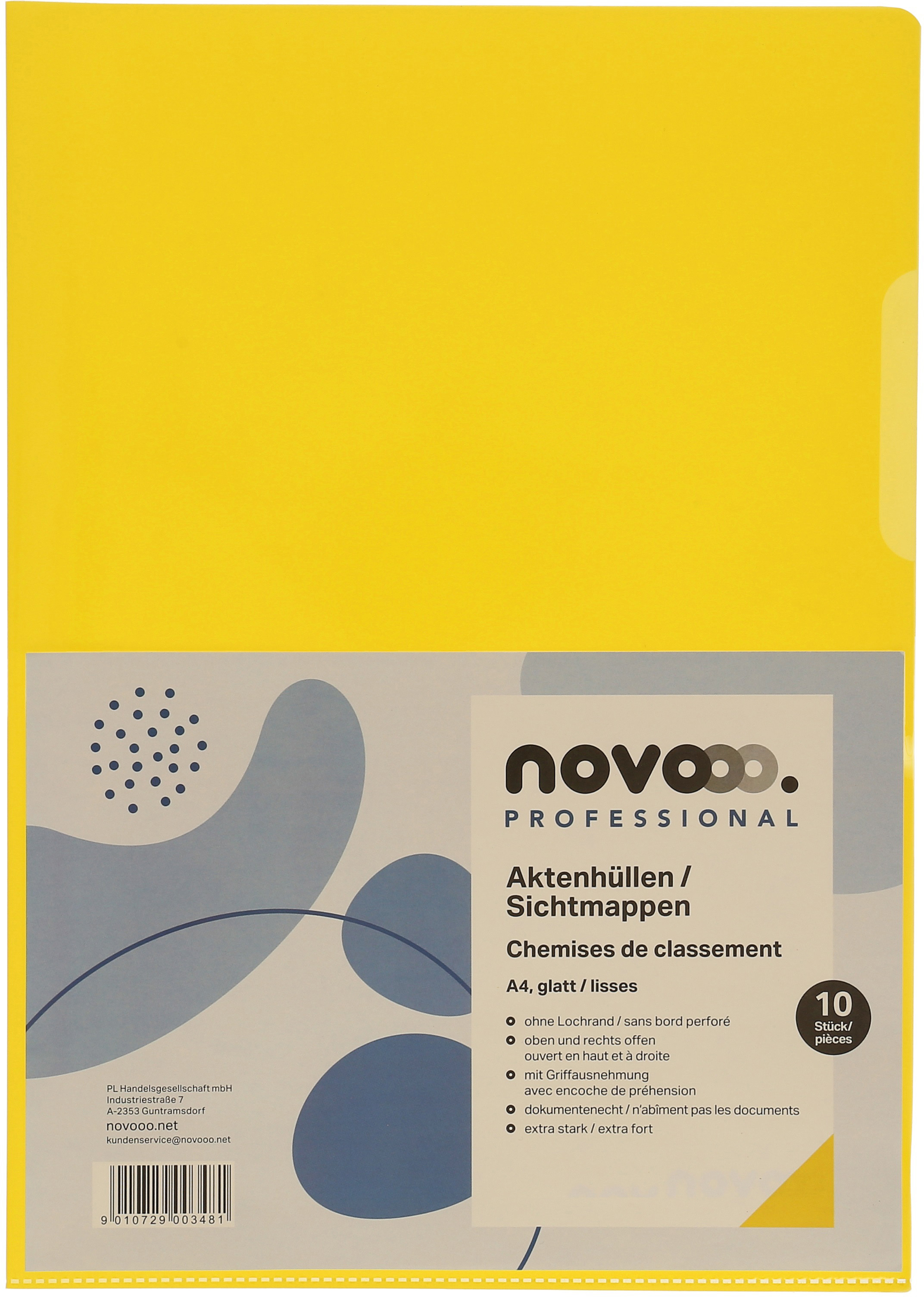 Les chemises transparentes NOVOOO sont fabriquées en polypropylène lisse d'une épaisseur de 140 µm. Les pochettes sont ouvertes en haut ainsi que sur le côté et ont une découpe de préhension pour faciliter le retrait. Les pochettes au format A4 permettent de conserver des documents.