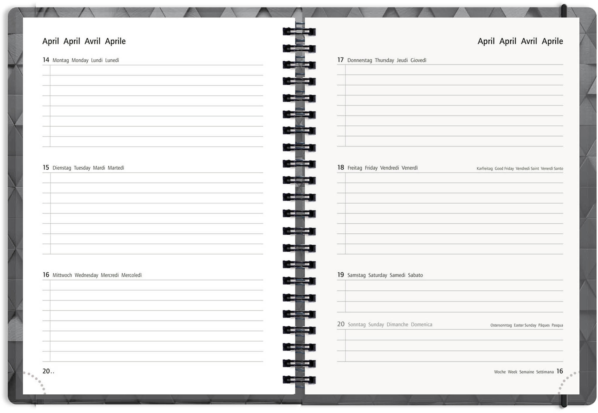 L'agenda scolaire MustHave a une couverture en PP durable et une fermeture à élastique. L'agenda contient 160 pages, 1 semaine sur 2 pages avec une impression en 4 langues : allemand, anglais, français & italien. Comme extra pratique, on y trouve une liste de notes, un emploi du temps, des pages d'adresses & de notes, des formules mathématiques et les vacances scolaires suisses. Grâce à la reliure à spirale Twin-Wire, l'agenda scolaire est agréable à utiliser.