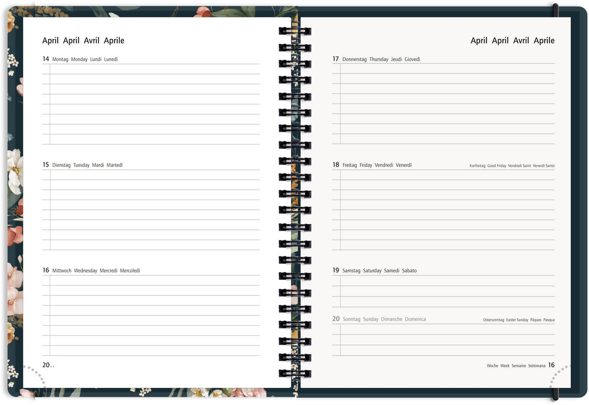 L'agenda scolaire MustHave a une couverture en PP durable et une fermeture à élastique. L'agenda contient 160 pages, 1 semaine sur 2 pages avec une impression en 4 langues : allemand, anglais, français & italien. Comme extra pratique, on y trouve une liste de notes, un emploi du temps, des pages d'adresses & de notes, des formules mathématiques et les vacances scolaires suisses. Grâce à la reliure à spirale Twin-Wire, l'agenda scolaire est agréable à utiliser.