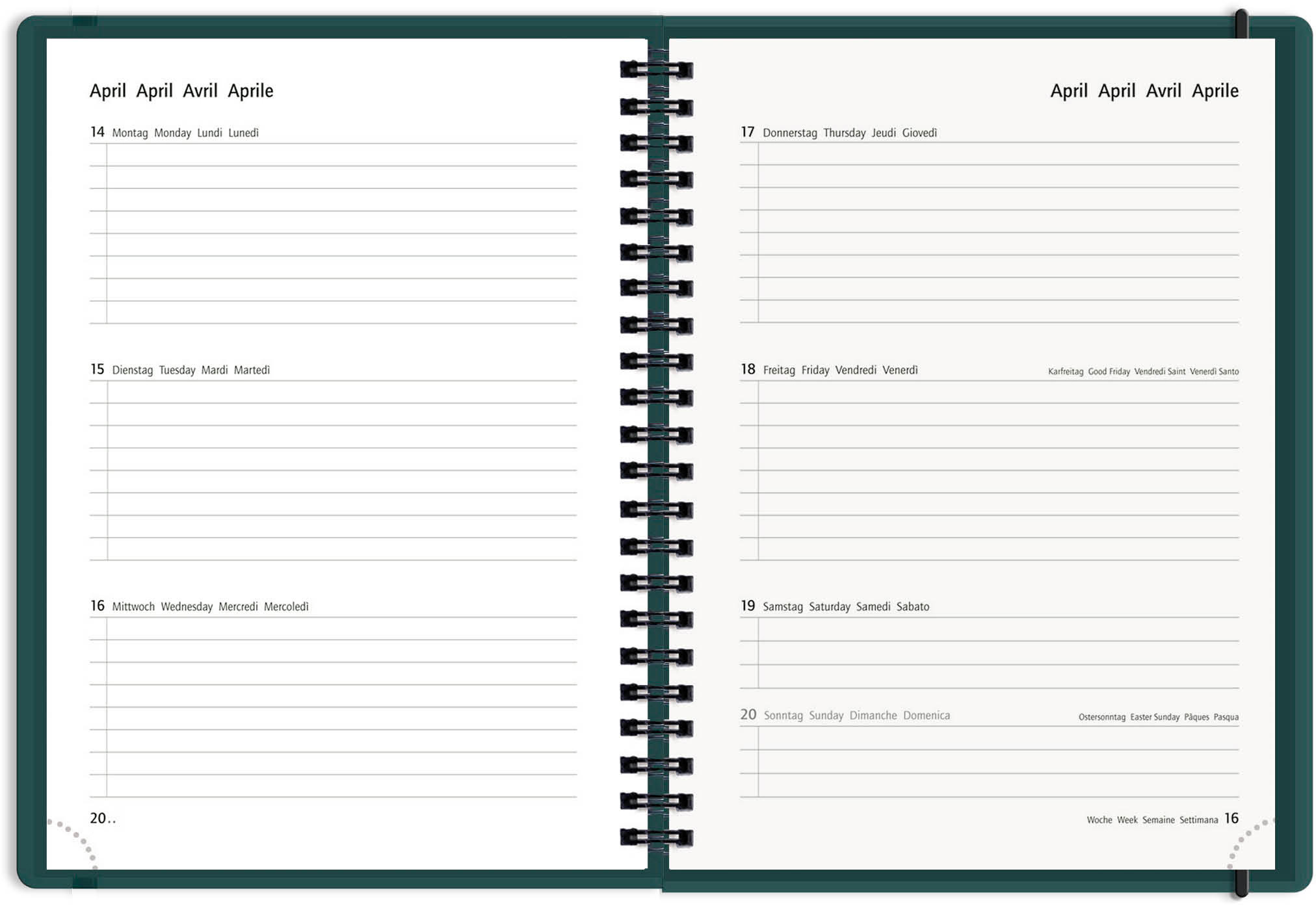 L'agenda scolaire MustHave a une couverture en PP durable et une fermeture à élastique. L'agenda contient 160 pages, 1 semaine sur 2 pages avec une impression en 4 langues : allemand, anglais, français & italien. Comme extra pratique, on y trouve une liste de notes, un emploi du temps, des pages d'adresses & de notes, des formules mathématiques et les vacances scolaires suisses. Grâce à la reliure à spirale Twin-Wire, l'agenda scolaire est agréable à utiliser.