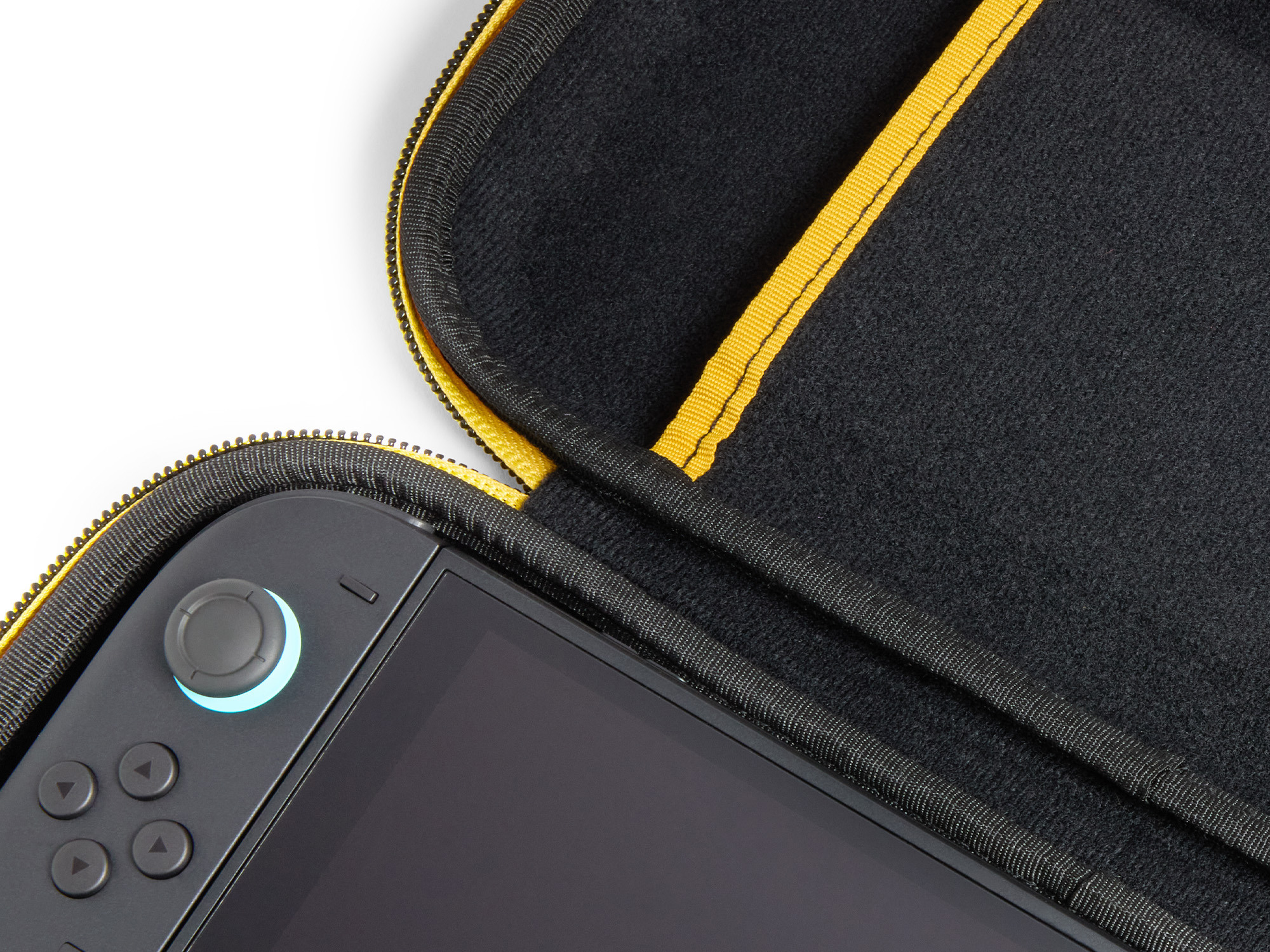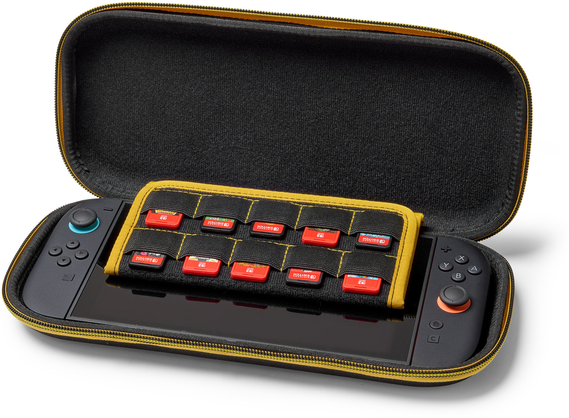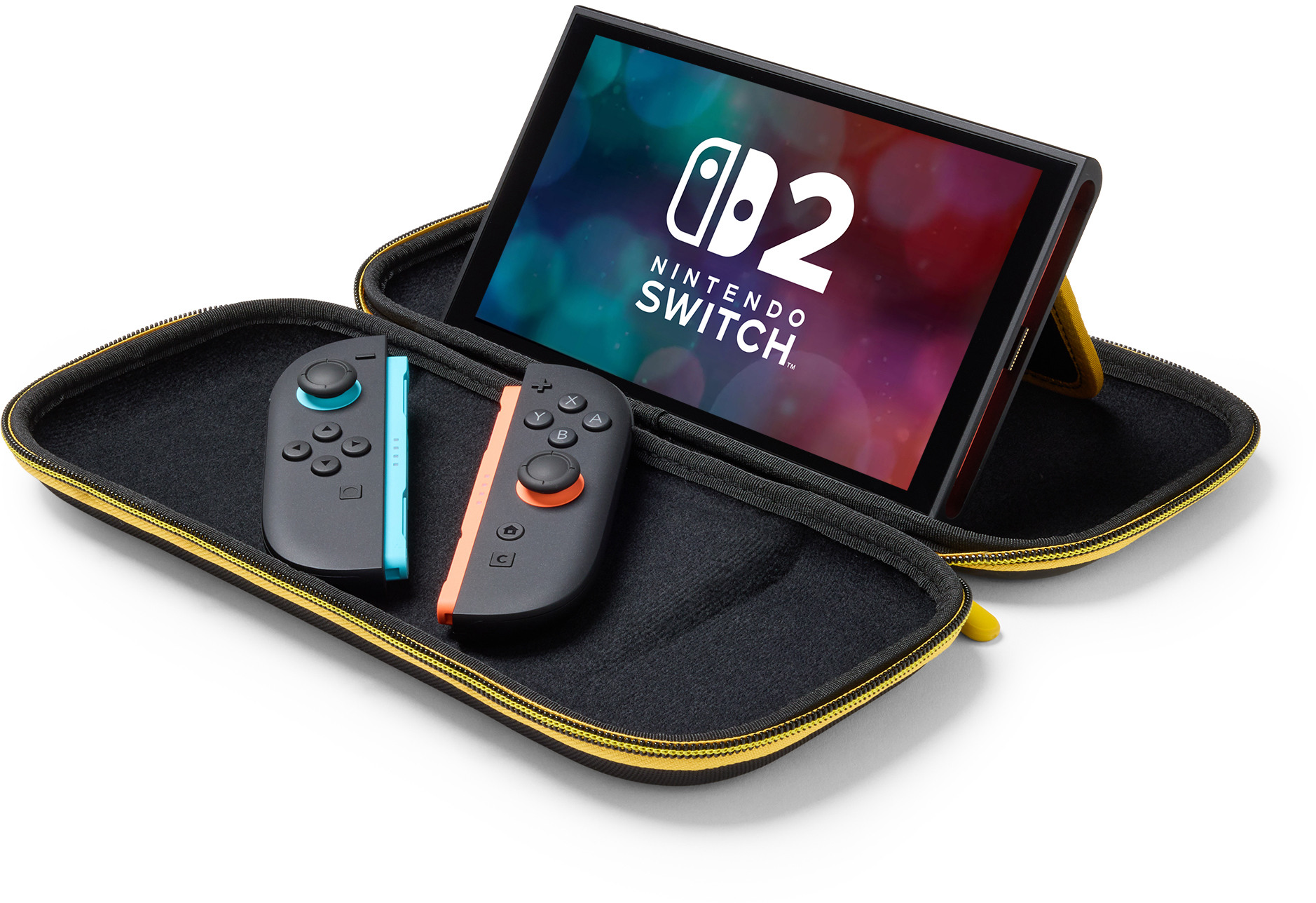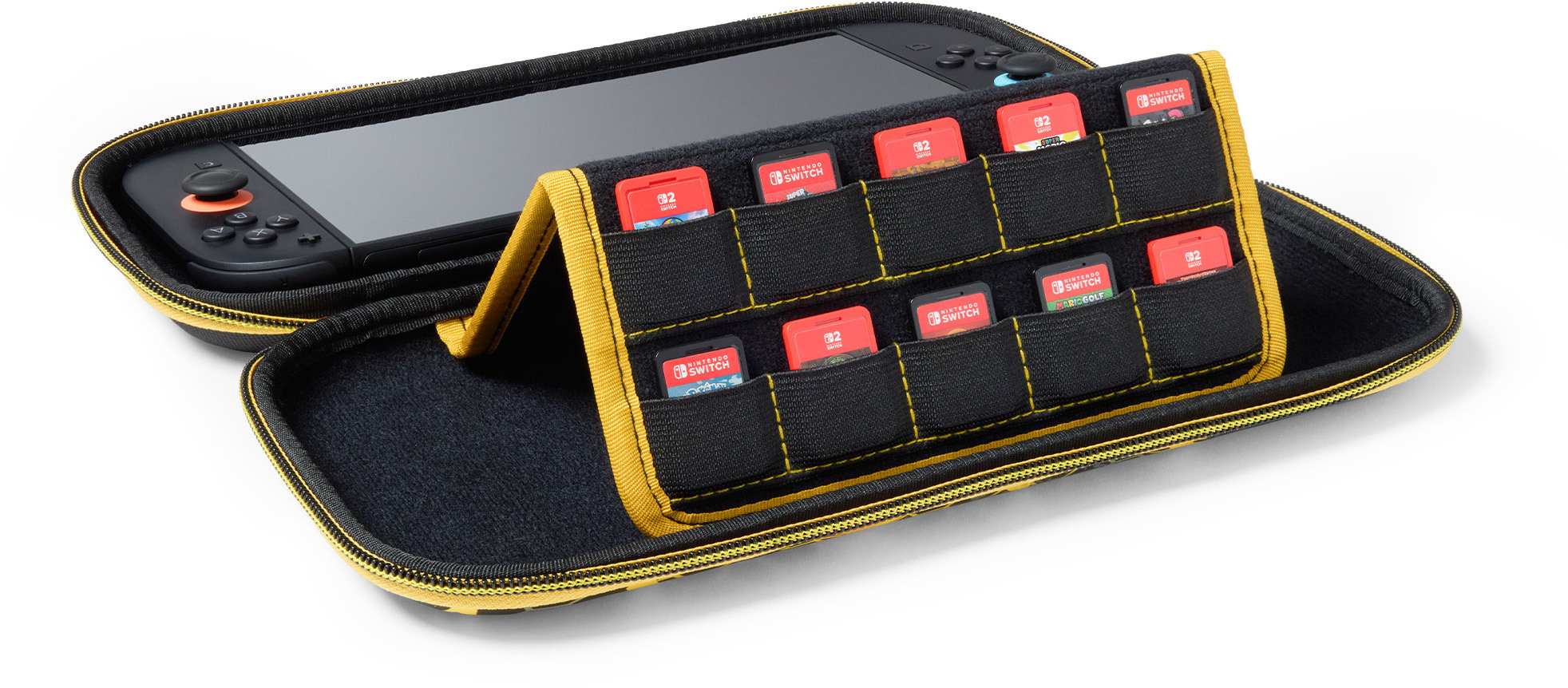 Cet étui fin sous licence officielle de PowerA te permet d'emporter ta Nintendo Switch 2 partout avec toi. À l'intérieur, tu trouveras une doublure en tissu doux et un support intégré pouvant accueillir jusqu'à dix cartes logicielles. Lorsque la console est rangée dans l'étui, le support intégré sert également de protection d'écran rembourrée pour éviter de rayer ton écran. Grâce à cet étui portable, tu peux continuer à t'amuser avec ta console Nintendo Switch 2 lorsque tu es en déplacement. N'importe où. À tout moment.