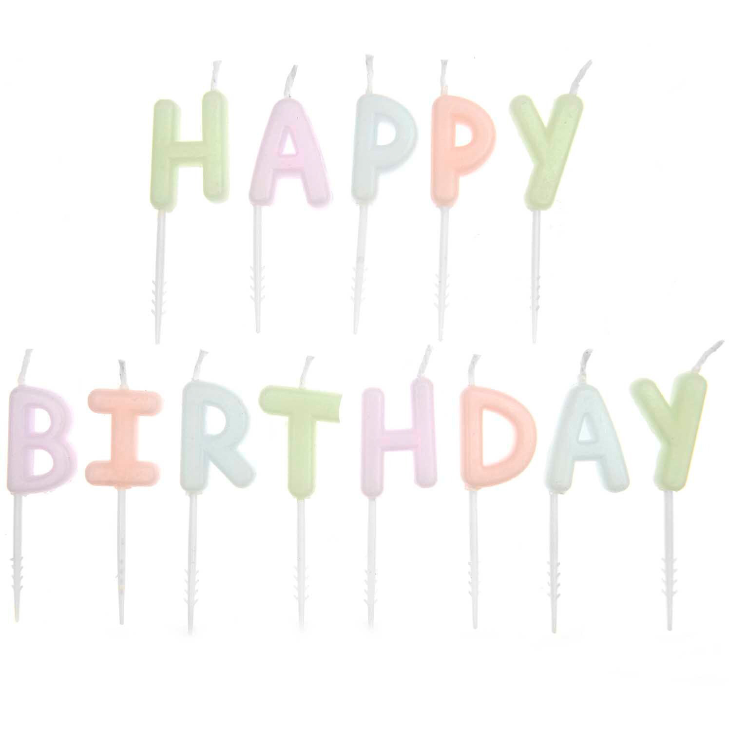 Bougies pour gâteau Happy Birthday pastel