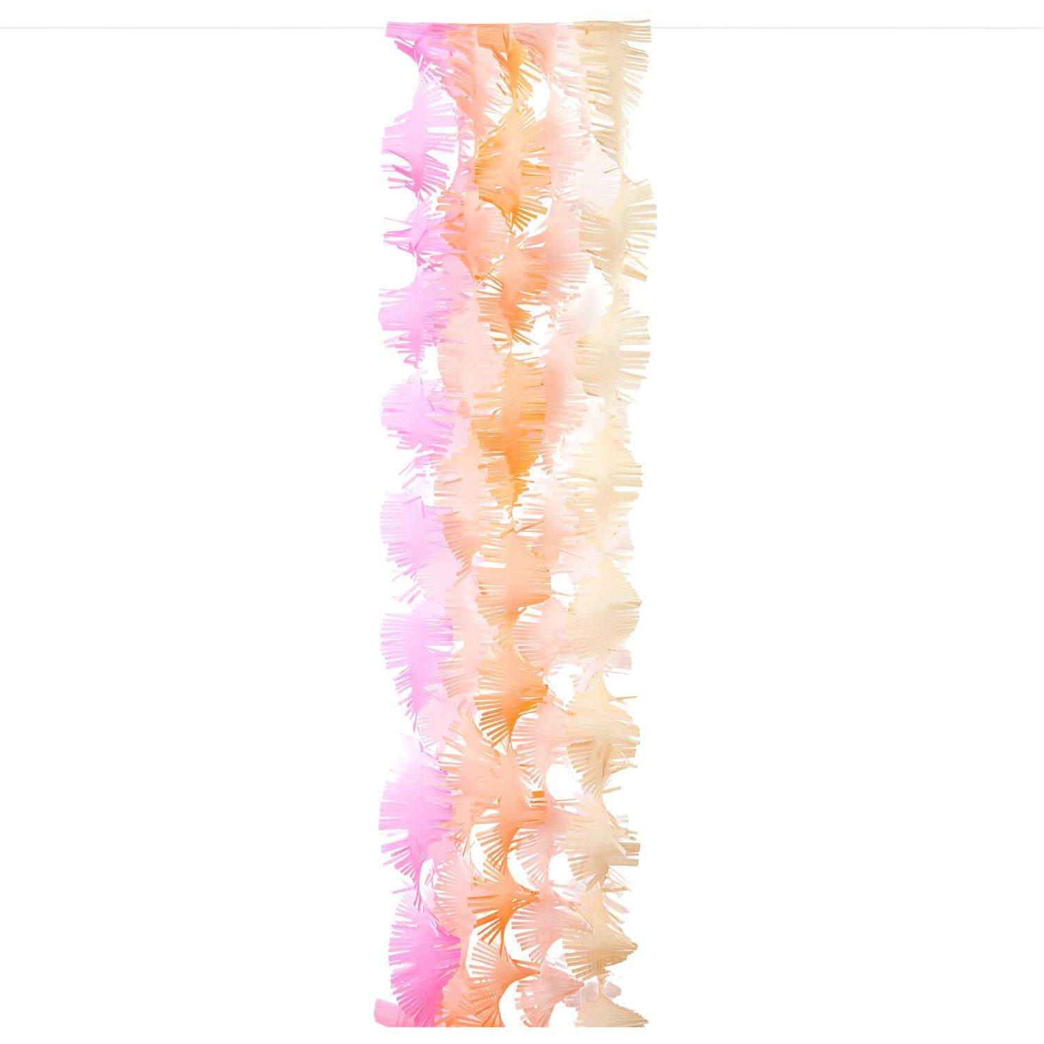Les guirlandes de crêpe apportent la touche finale à votre fête ! Installez la guirlande par exemple sur des murs tristes ou comme arrière-plan d'une photobox. Quelle que soit l'utilisation que vous en ferez, la guirlande attirera tous les regards grâce à sa forme torsadée et à ses nombreuses franges.
