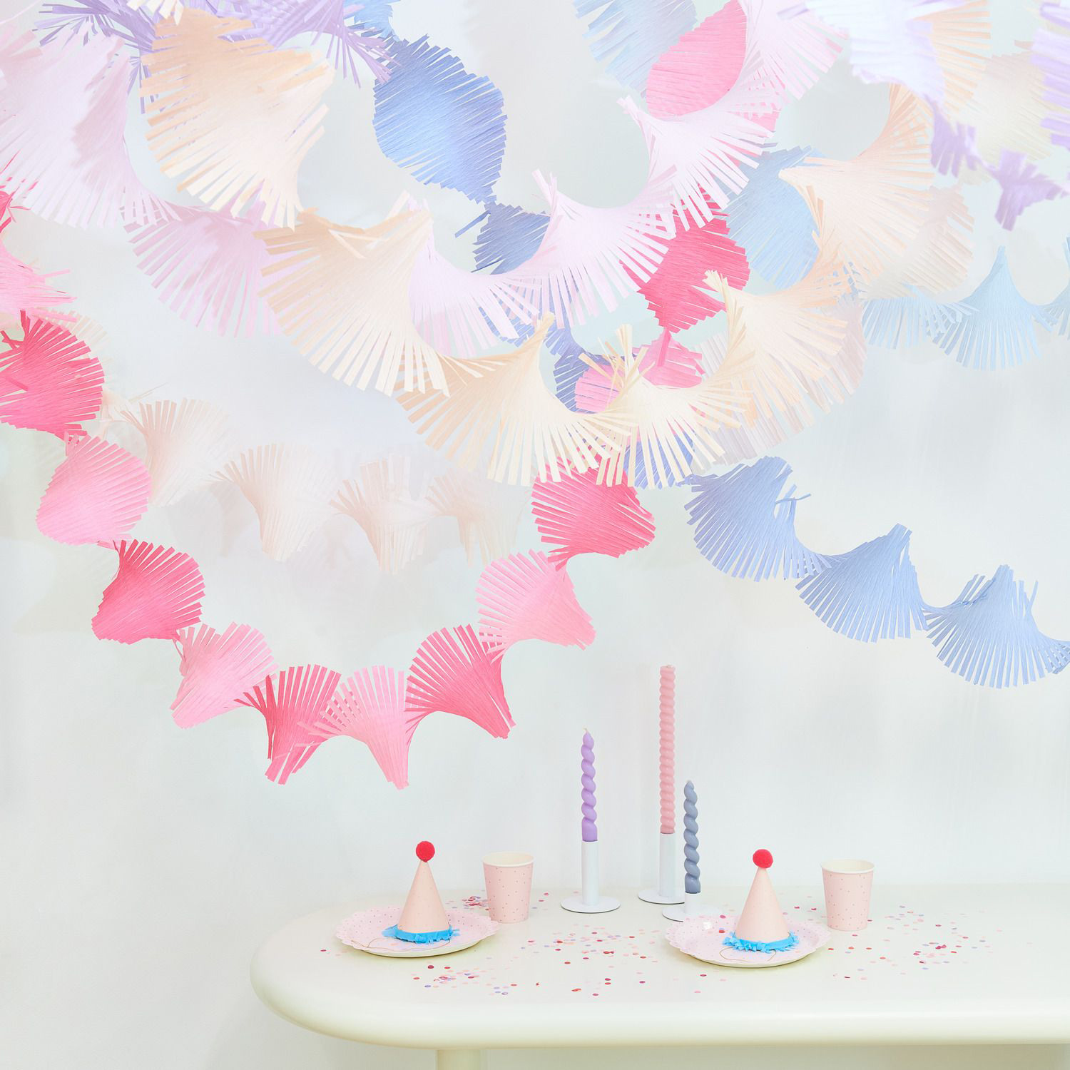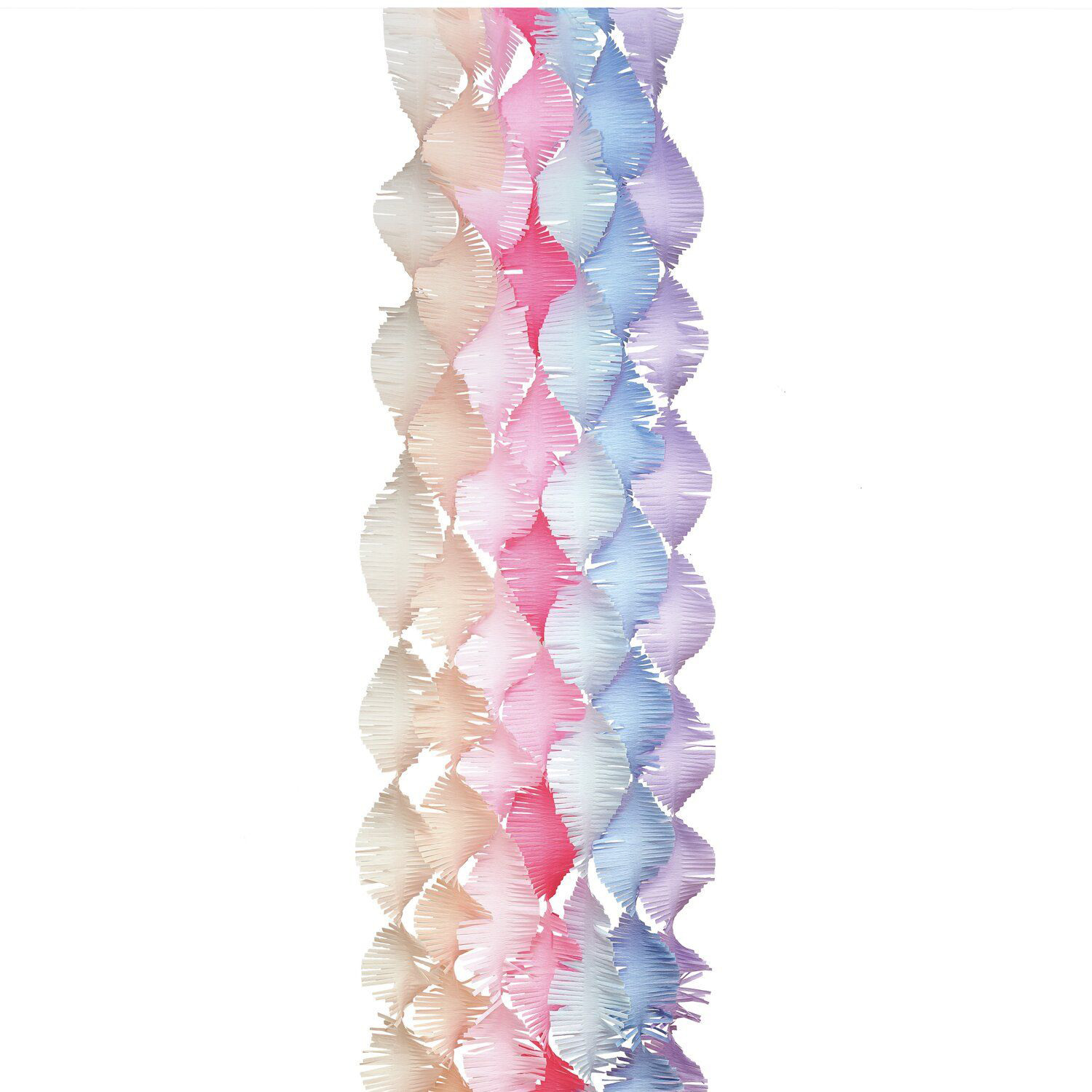 Les guirlandes de crêpe apportent la touche finale à votre fête ! Installez la guirlande par exemple sur des murs tristes ou comme arrière-plan d'une photobox. Quelle que soit l'utilisation que vous en ferez, la guirlande attirera tous les regards grâce à sa forme torsadée et à ses nombreuses franges.