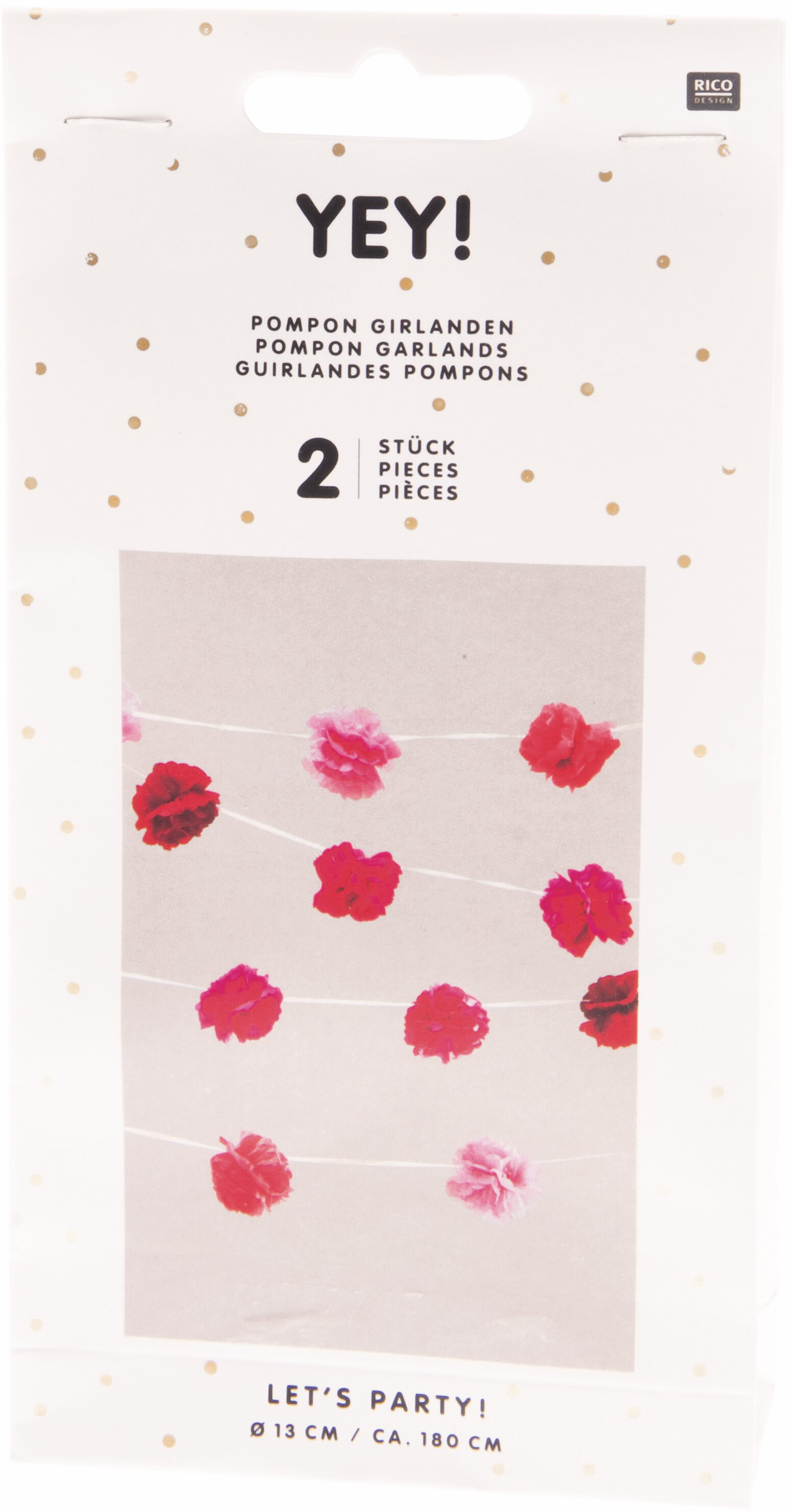 Les guirlandes à pompons sont des décorations délicates pour les anniversaires, les mariages ou les garden-parties ! Utilisez les guirlandes pour les anniversaires, les fêtes de communion ou de confirmation, les mariages et d'autres occasions. Les guirlandes d'environ 1,8 m de long sont disponibles par lot de 2 et se composent chacune de six pompons.