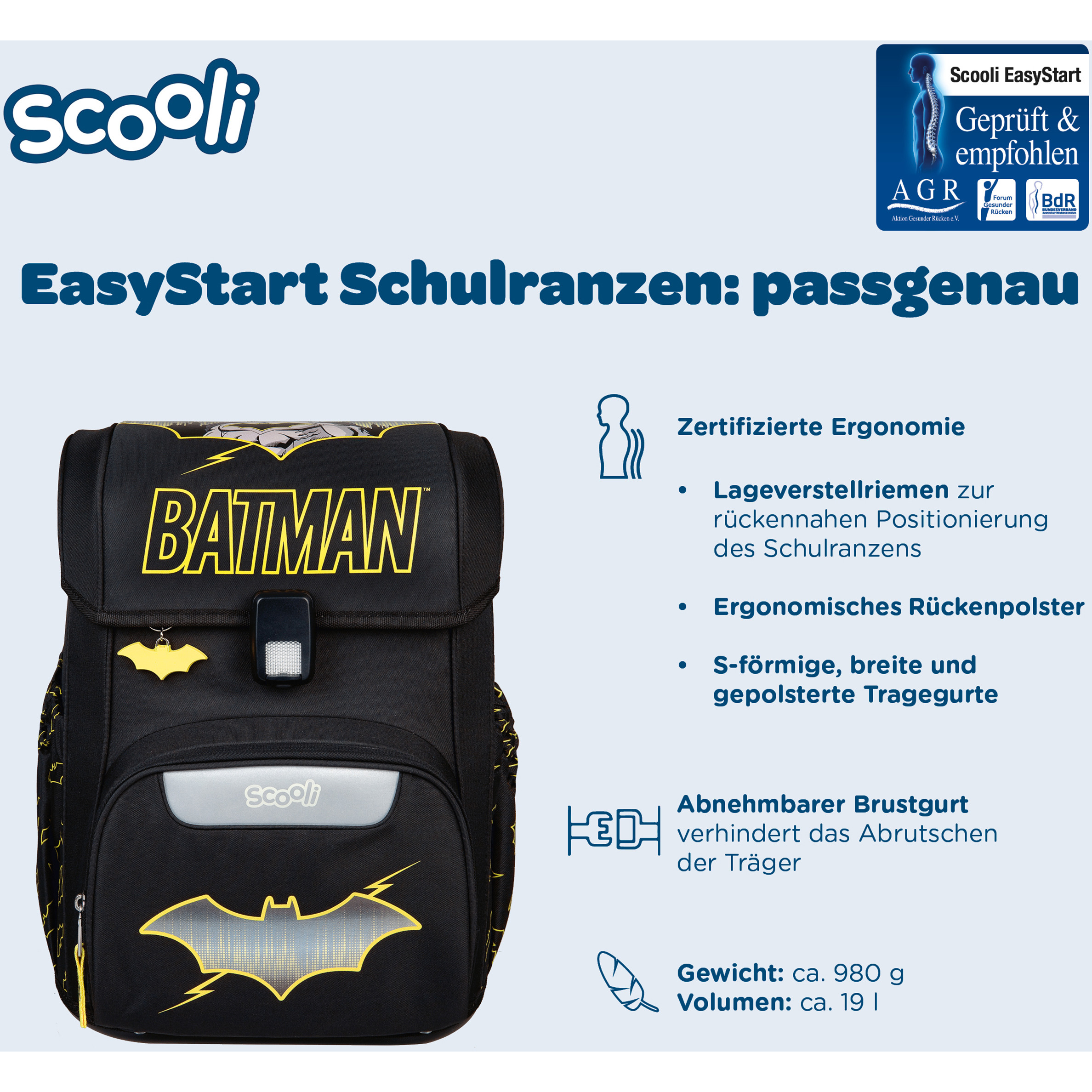 - Le cartable EasyStart de Scooli, sous licence officielle, au design de Batman - parfait pour tous les petits fans.