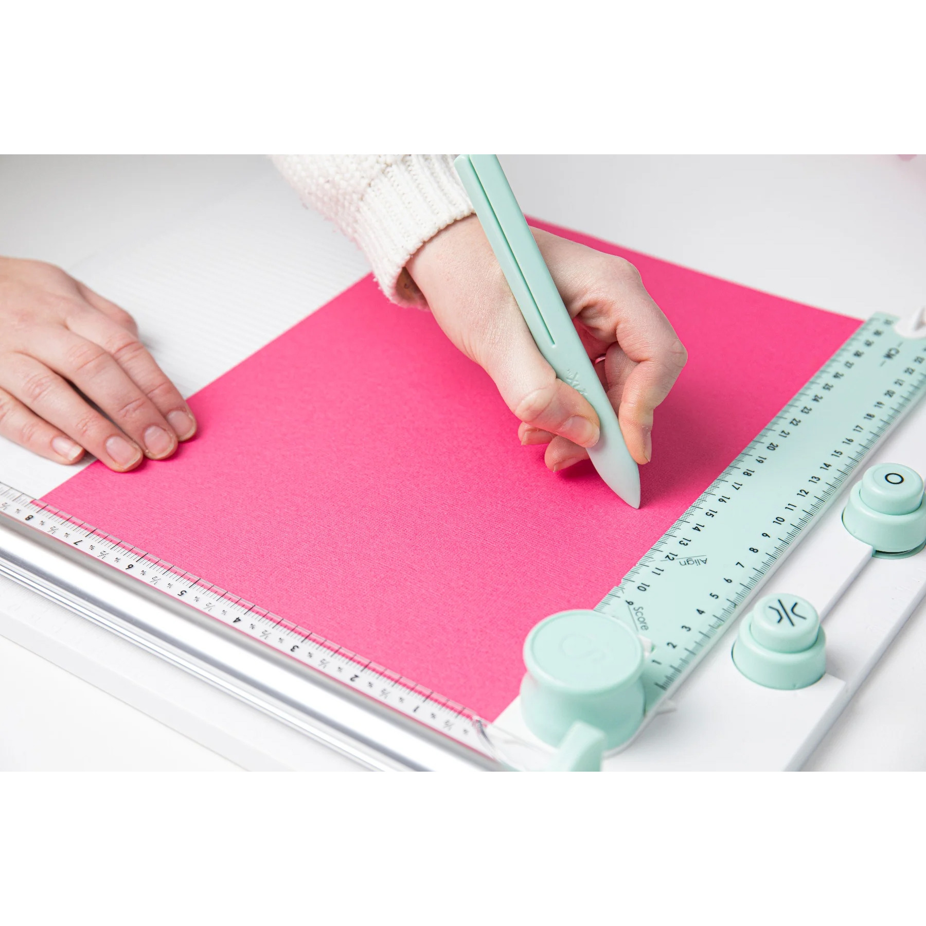 Sizzix™ Outils de bricolage - Plieuse & découpeuse "Où la précision rencontre la créativité ! Que vous souhaitiez créer une carte personnalisée et l'enveloppe correspondante, la boîte parfaitement adaptée à un cadeau impossible à emballer ou des articles de décoration tels que des bannières, des nœuds et des rosaces, tout est désormais possible avec la planche à plier & la découpeuse. Ce nouvel outil passionnant de Sizzix vous donne la liberté de réaliser vos créations selon vos besoins et de porter la personnalisation à un niveau professionnel ! Avec la possibilité de couper et de plier jusqu'à 12" x 12", vous pouvez maintenant réaliser facilement et avec précision des créations vraiment sur mesure. Scannez le code QR pour accéder à notre générateur de tailles de boîtes et d'enveloppes, qui vous fournira de nombreuses inspirations et des instructions utiles pour enrichir encore votre voyage créatif. Ce must-have de toute salle de bricolage, avec son design élégant et stylé, deviendra un compagnon indispensable que vous utiliserez encore et encore.