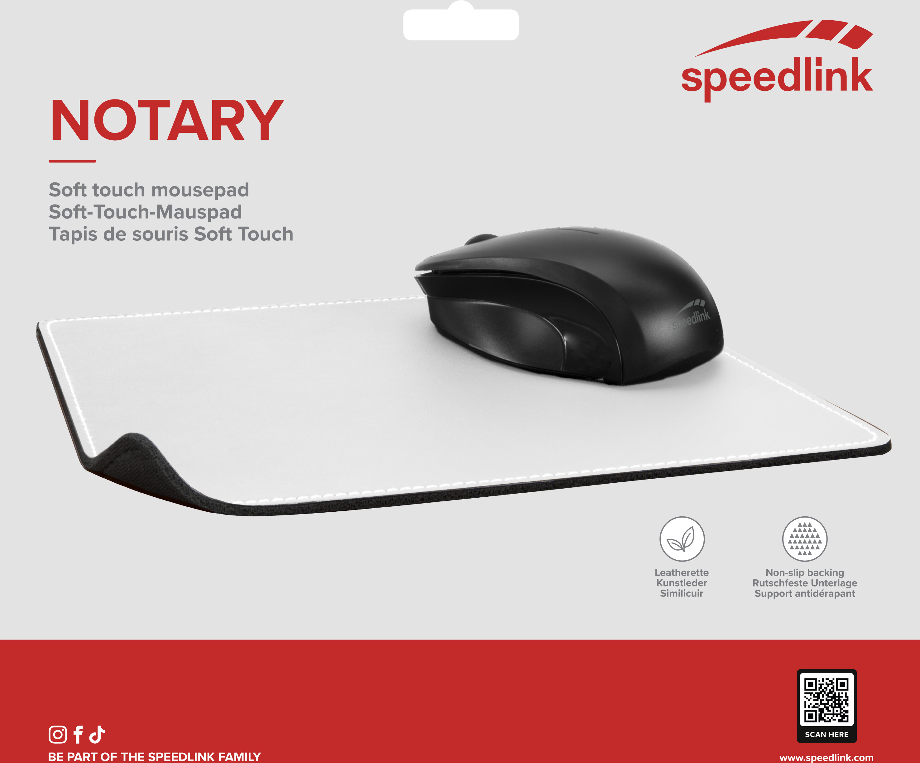 Le tapis de souris Notary est fabriqué dans un matériau rigide de qualité supérieure et présente l’aspect du cuir. La surface est agréable au toucher, antistatique et parfaite pour une commande précise de la souris. La face inférieure antidérapante s’appl