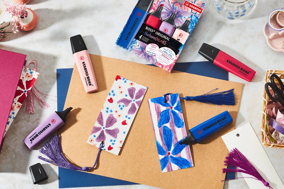 Le STABILO BOSS ORIGINAL NatureCOLORS Wildflower Edition ne convainc pas seulement par ses couleurs voyantes, mais aussi par ses propriétés qui favorisent la productivité et la créativité.