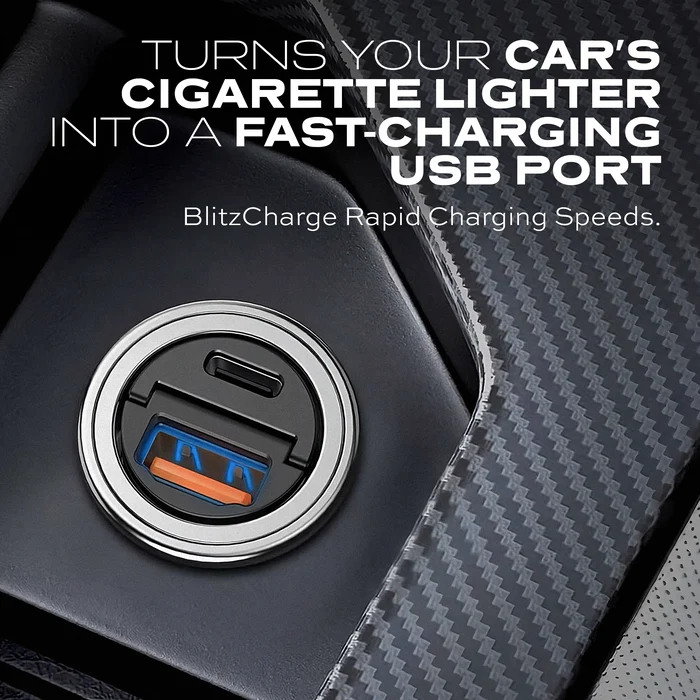 Transforme l'allume-cigare de votre voiture en un port USB de recharge rapide. Cet adaptateur permet des vitesses de charge rapide BlitzCharge via l'allume-cigare de votre voiture ou camion.