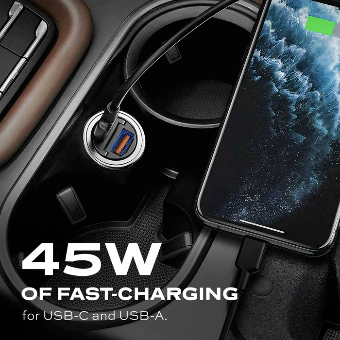 - Charge rapide de 5 W pour USB-C et USB-A : avec une puissance pouvant atteindre 45 W, chargez un smartphone de 0 à 46 % en seulement 20 minutes.