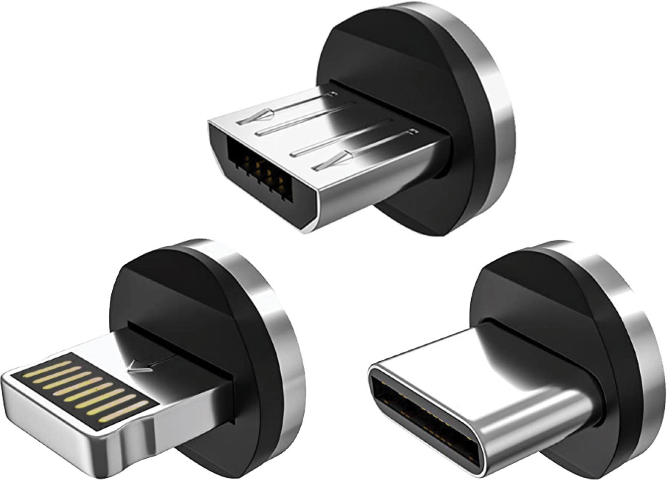 S'adapte à tous les téléphones et à la plupart des autres appareils : il est livré avec trois connecteurs : Lightning (produits Apple), USB-C (nouveaux androïdes et bien d'autres) et Micro-USB (anciens modèles Android), ou simplement 3x le connecteur que vous avez choisi.
