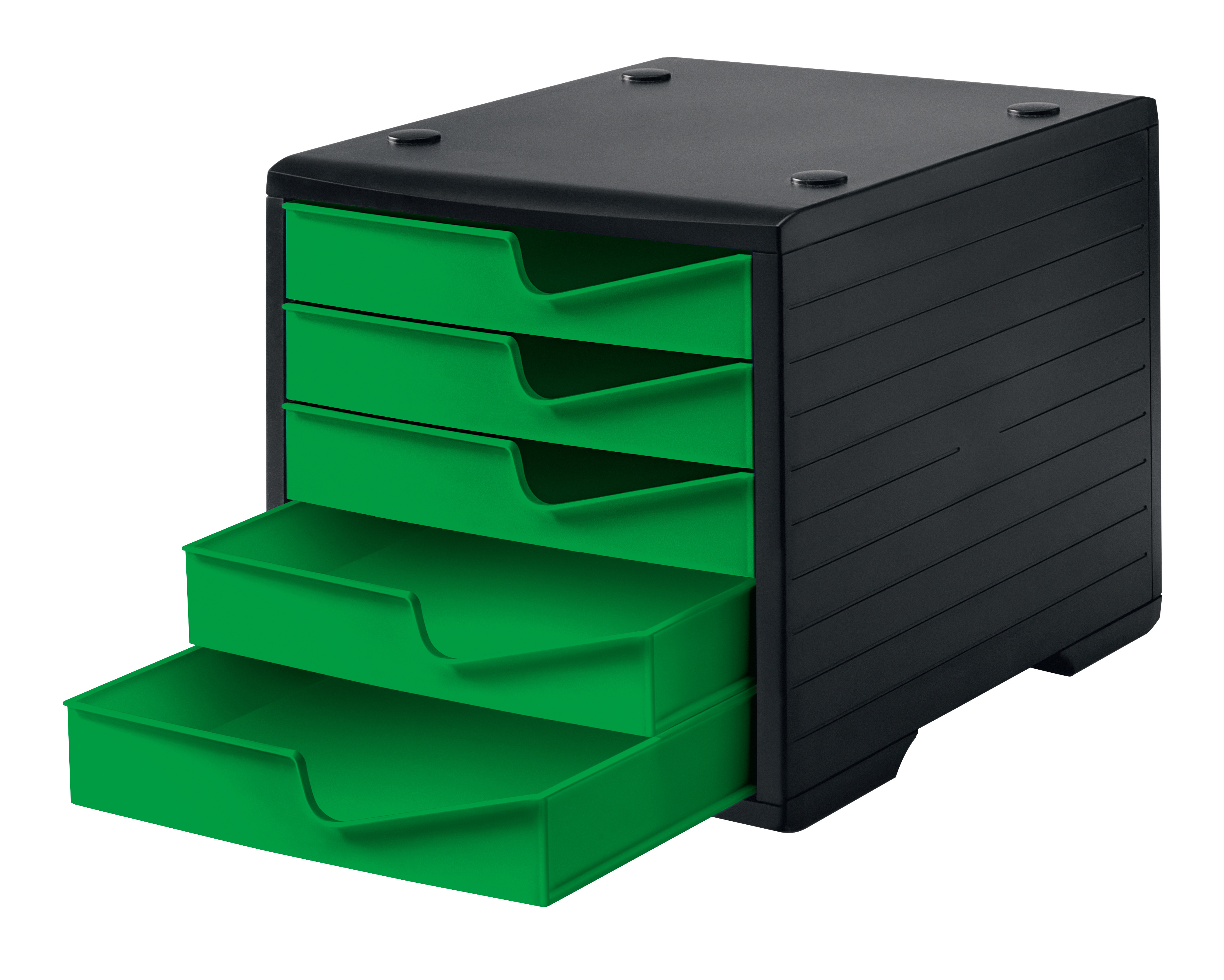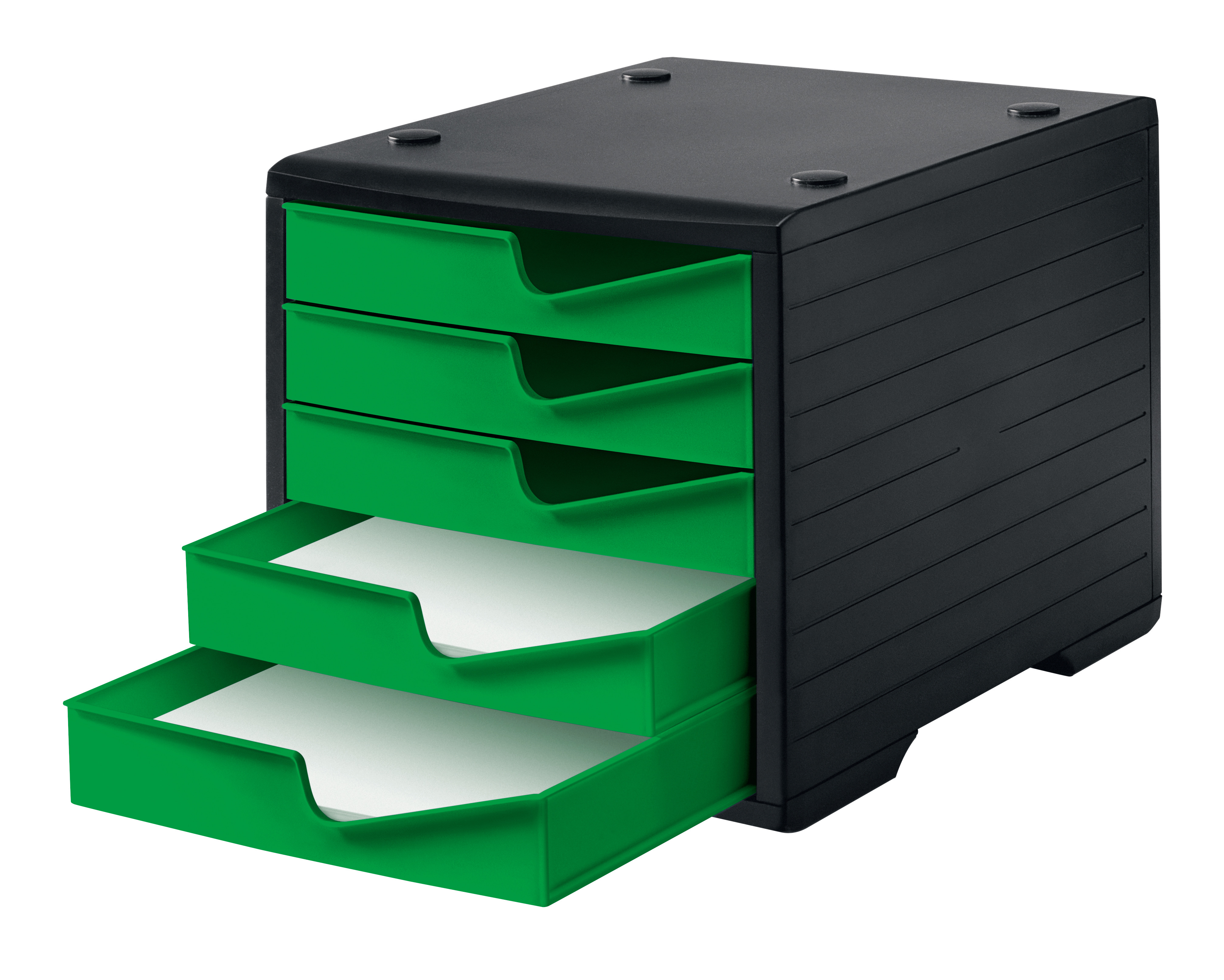 Un module élégant au design tendance avec 5 tiroirs et module noir est fabriqué en polystèrene. Le module est empilable sans pièces de connection. Les tiroirs ont avec arrêt de tiroir pratique et convient jusqu'au format C4.