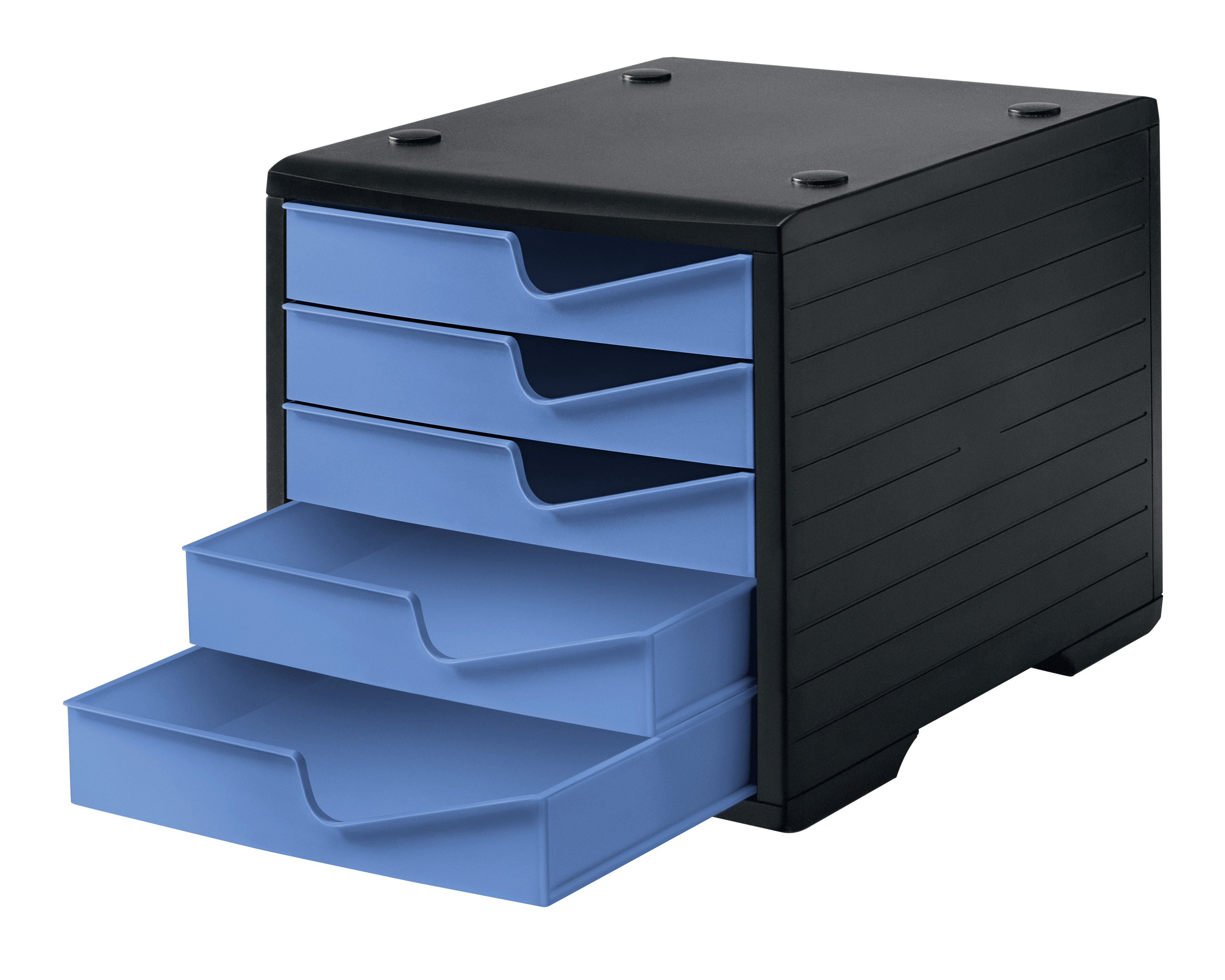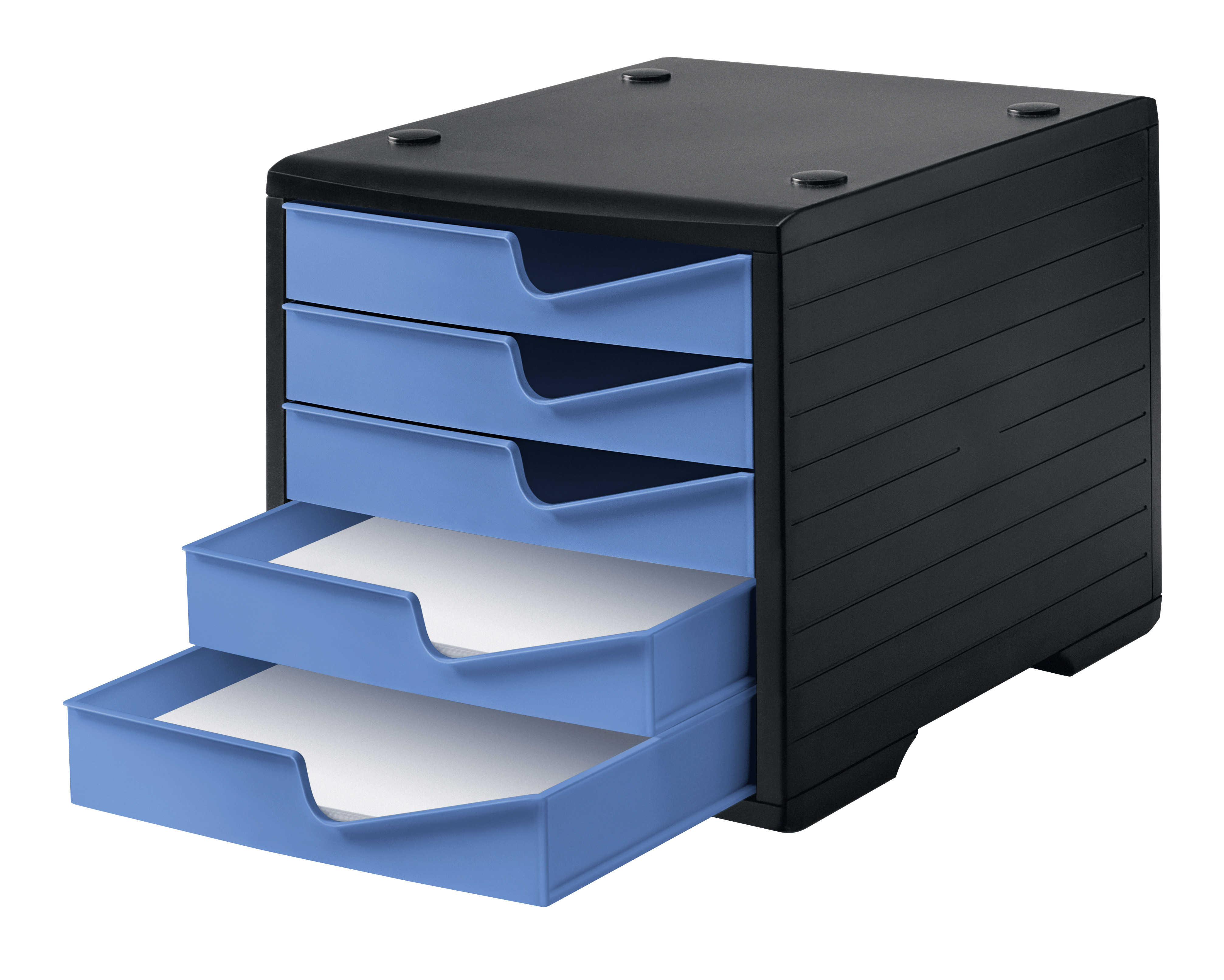 Un module élégant au design tendance avec 5 tiroirs et module noir est fabriqué en polystèrene. Le module est empilable sans pièces de connection. Les tiroirs ont avec arrêt de tiroir pratique et convient jusqu'au format C4.