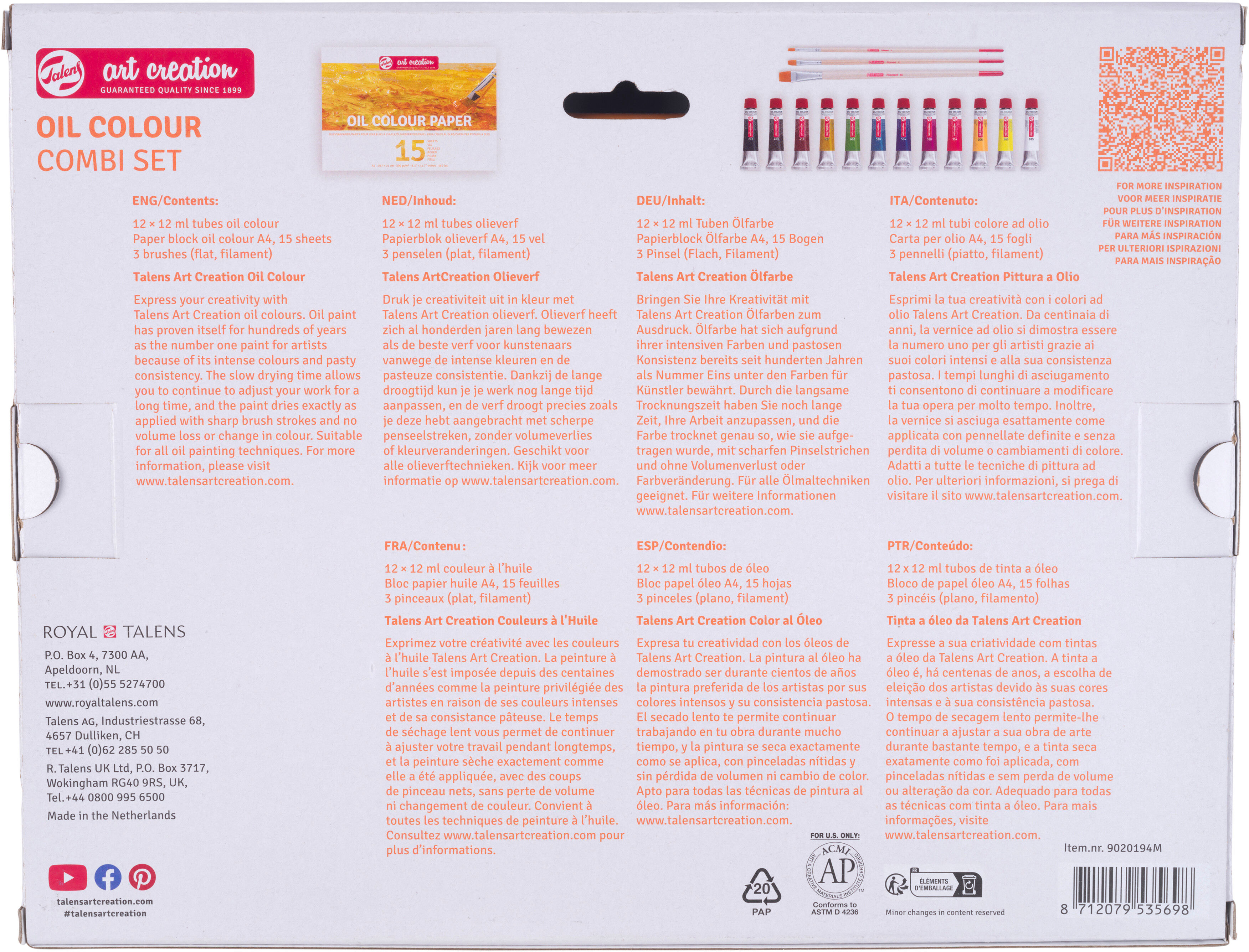 Talens Art Creation Peinture à l'huile Set de combinaison avec bloc de papier